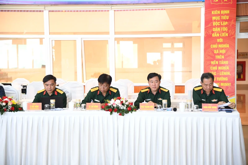 Thủ trưởng Bộ Tham mưu, Cục Chính trị, Cục Hậu cần – Kỹ thuật, Văn phòng Quân khu tham dự hội nghị (từ phải qua trái).