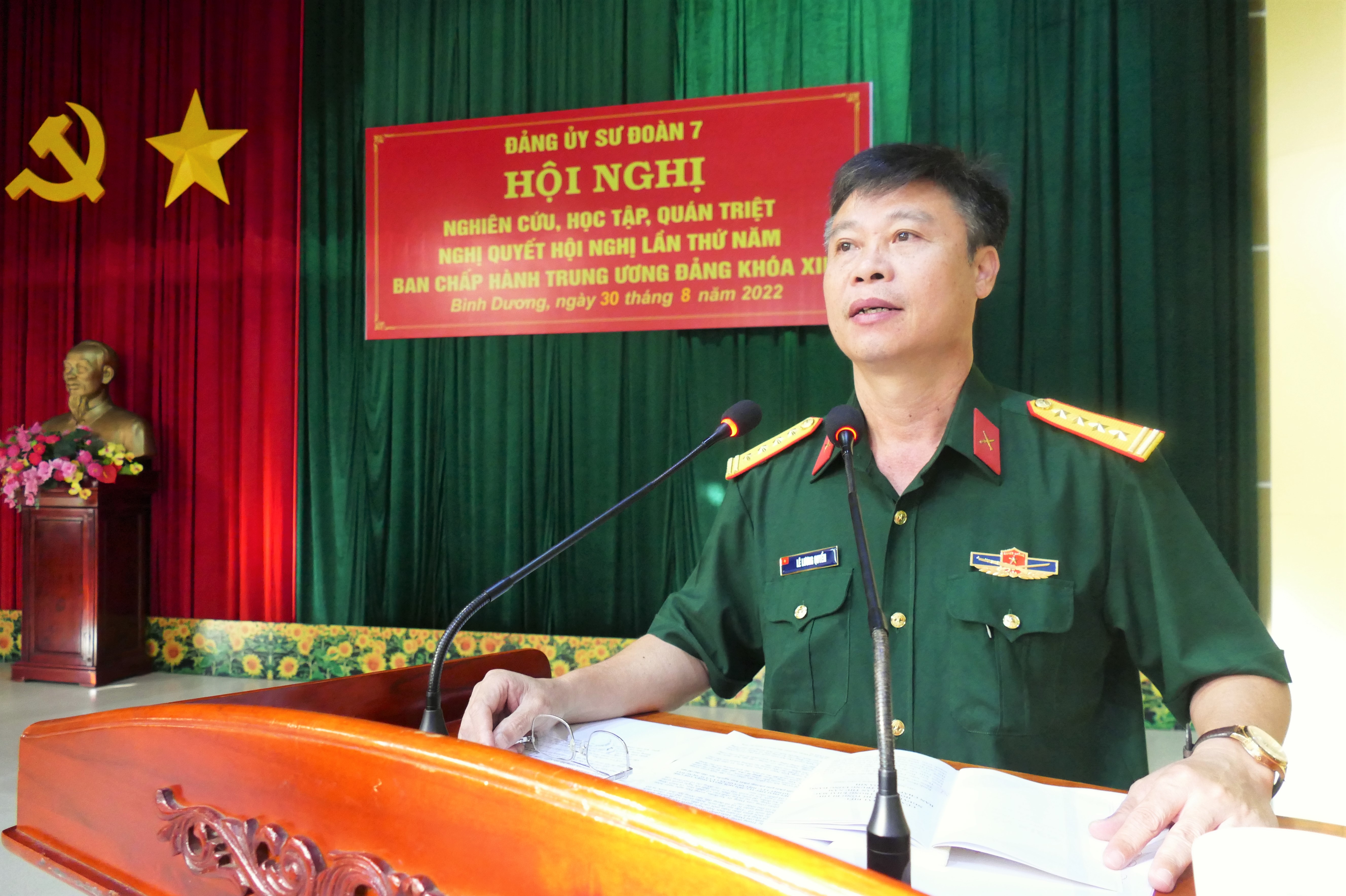 Đại tá Lê Lương Quyền, Bí thư Đảng ủy, Chính ủy Sư đoàn 7 chủ trì hội nghị.