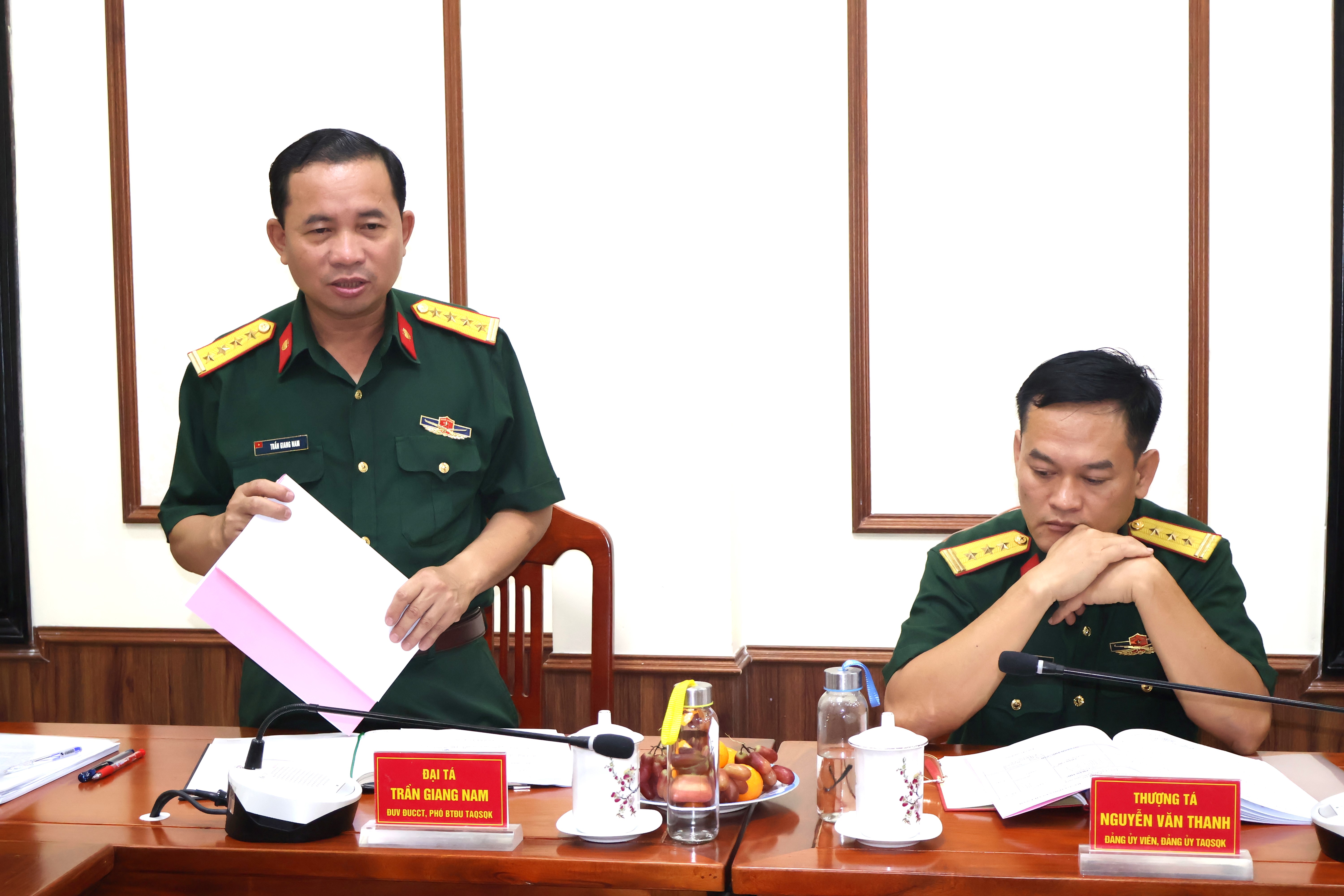 Thượng tá Hồ Ngọc Phong, Phó trưởng Phòng Kế hoạch – Tổng hợp Cục Chính trị Quân khu phát biểu tại hội nghị.