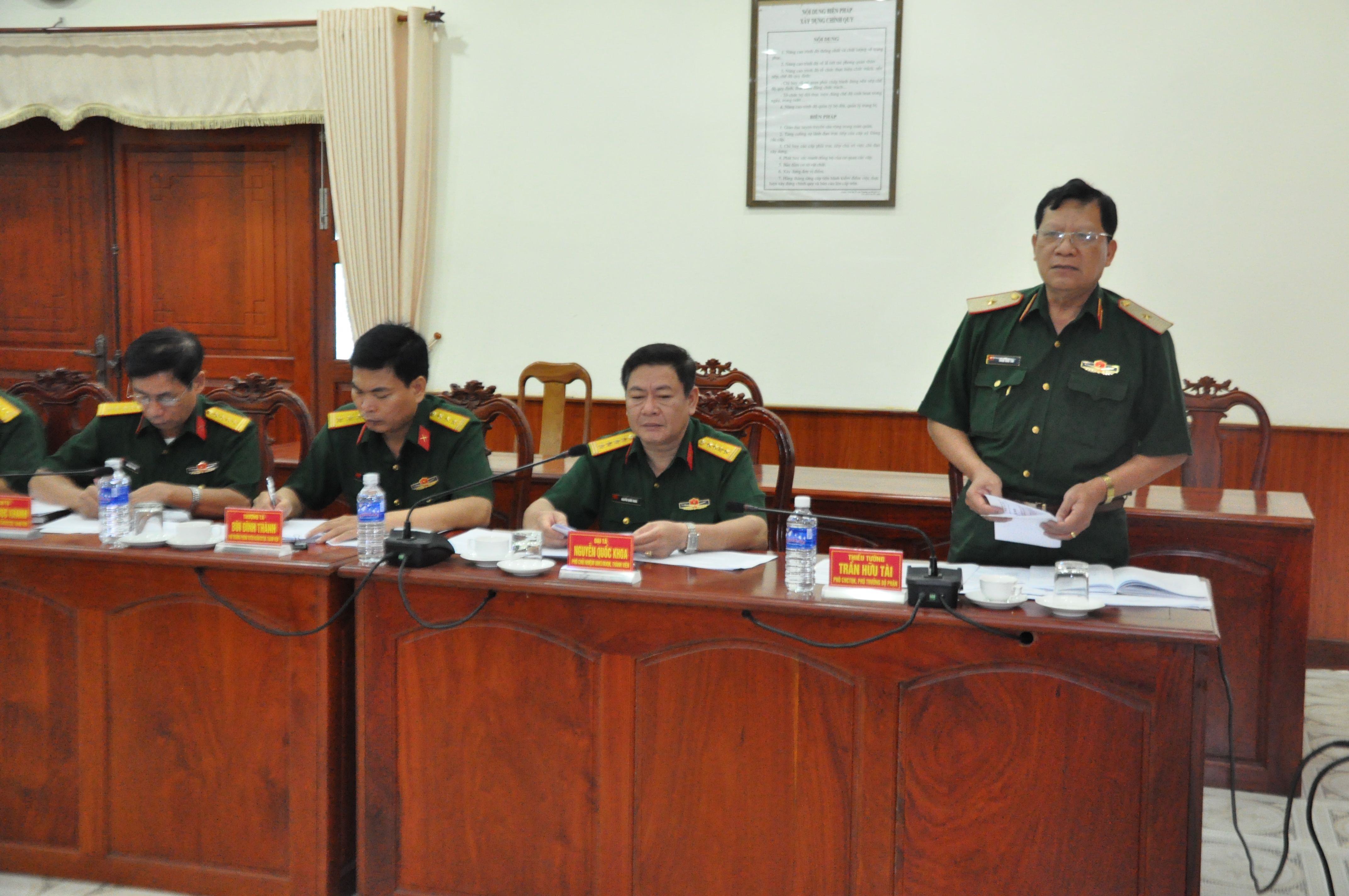 Thiếu tướng Trần Hữu Tài, Phó Chủ nhiệm Chính trị Quân khu phát biểu tại hội nghị