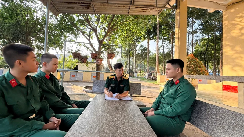 Là những người trực tiếp gắn bó với bộ đội trong từng hoạt động hằng ngày, đội ngũ cán bộ đại đội, trung đội, tiểu đội luôn đồng hành cùng chiến sĩ trong học tập, sinh hoạt và công tác. Từ bữa ăn, giấc ngủ đến các hoạt động sinh hoạt hằng ngày, cán bộ luôn cùng ăn, cùng ở, cùng làm với bộ đội; trực tiếp hướng dẫn, uốn nắn từng nền nếp, quy định trong đời sống tập thể. Những buổi tối sau giờ sinh hoạt, cán bộ lại chủ động gặp gỡ, trò chuyện, nắm bắt tâm tư, nguyện vọng của chiến sĩ mới; kịp thời động viên, chia sẻ, giúp các đồng chí vơi bớt bỡ ngỡ, nhanh chóng ổn định tư tưởng trong những ngày đầu về đơn vị. Chính sự gần gũi, chân thành và trách nhiệm ấy đã dần xóa đi khoảng cách ban đầu, giúp chiến sĩ mới cảm nhận rõ sự quan tâm, tình đồng chí, đồng đội trong đơn vị, từ đó thêm yên tâm, tin tưởng và nhanh chóng hòa nhập với môi trường quân ngũ.