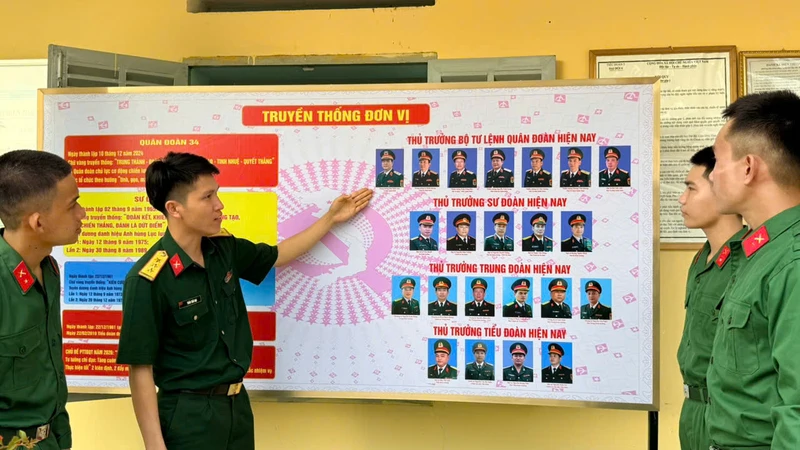 Chiến sĩ mới tìm hiểu truyền thống đơn vị.
