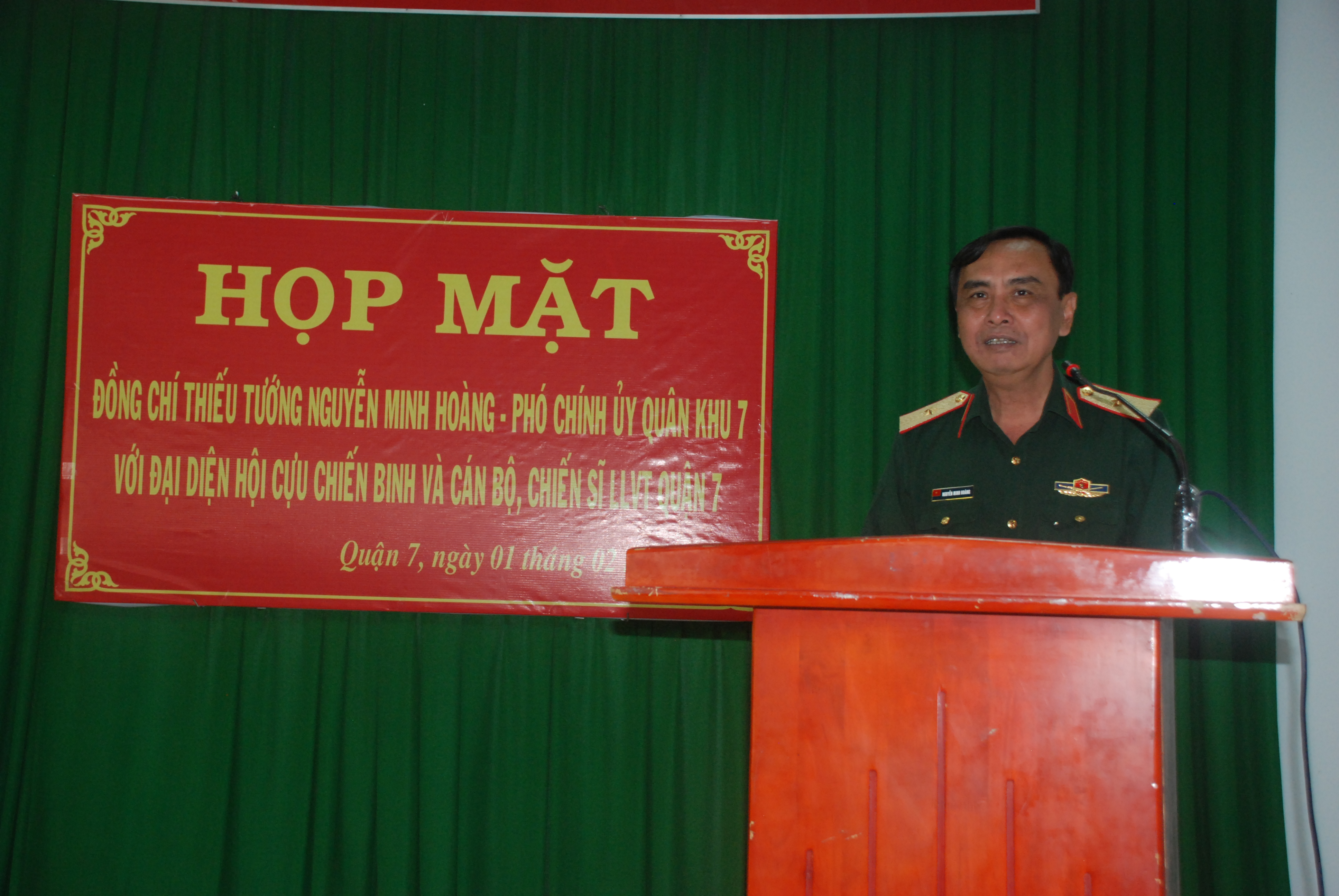 Thiếu tướng Nguyễn Minh Hoàng bày tỏ lòng biết ơn đến sự giúp đỡ của cấp ủy, chính quyền địa phương, LLVT Quận 7 và đặc biệt là các cấp Hội Cựu chiến binh đã dành tình cảm, sự yêu mến, giúp đỡ tổ đại biểu Quốc hội hoạt động trên địa bàn. Đồng thời, đồng chí Phó Chính ủy Quân khu cũng bày tỏ lòng biết ơn đối với các cấp hội CCB đã tạo điều kiện, giúp đỡ LLVT Quận 7 hoàn thành tốt nhiệm vụ trong thời gian qua, góp phần vào việc hoàn thành nhiệm vụ của LLVT Quân khu nói chung.