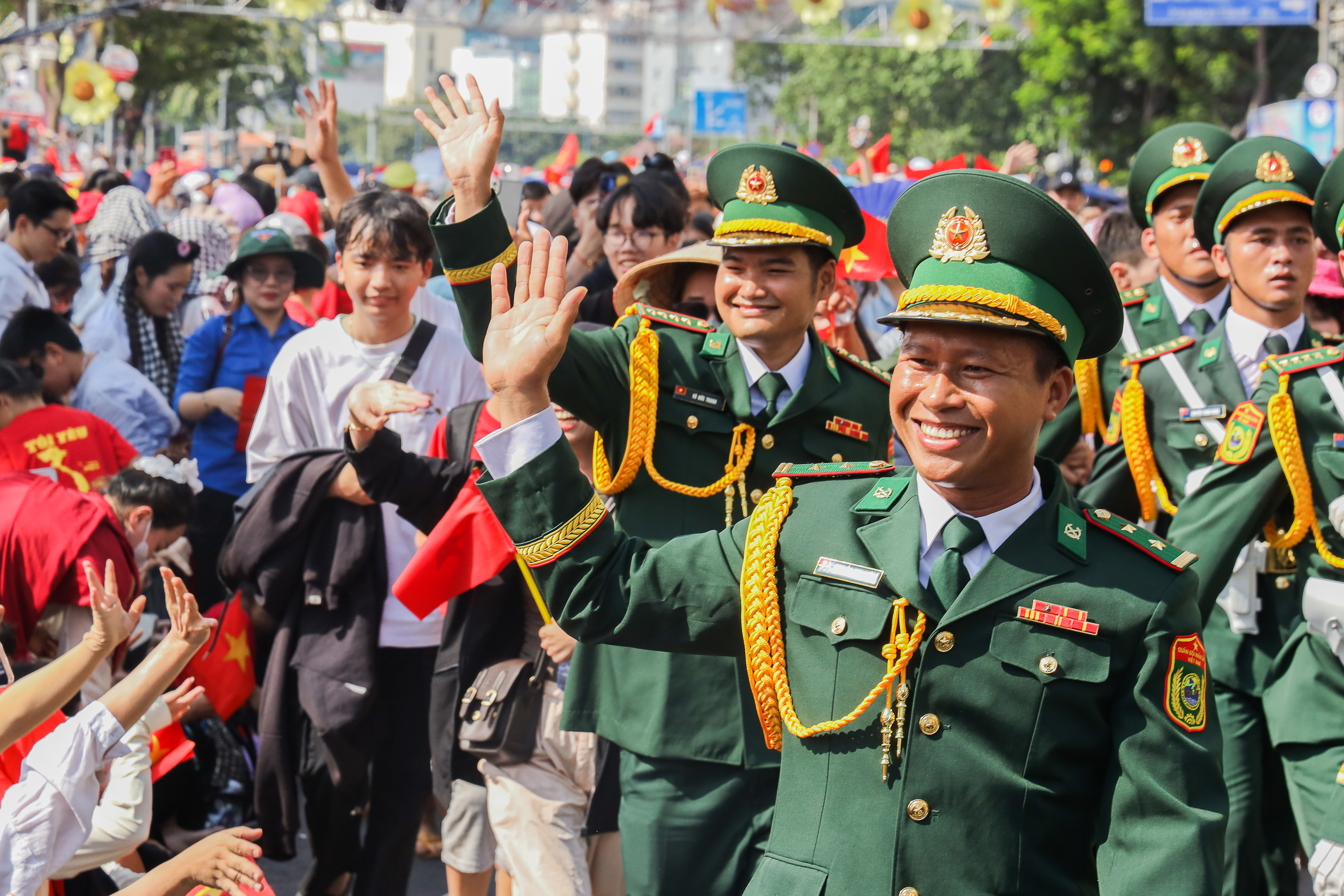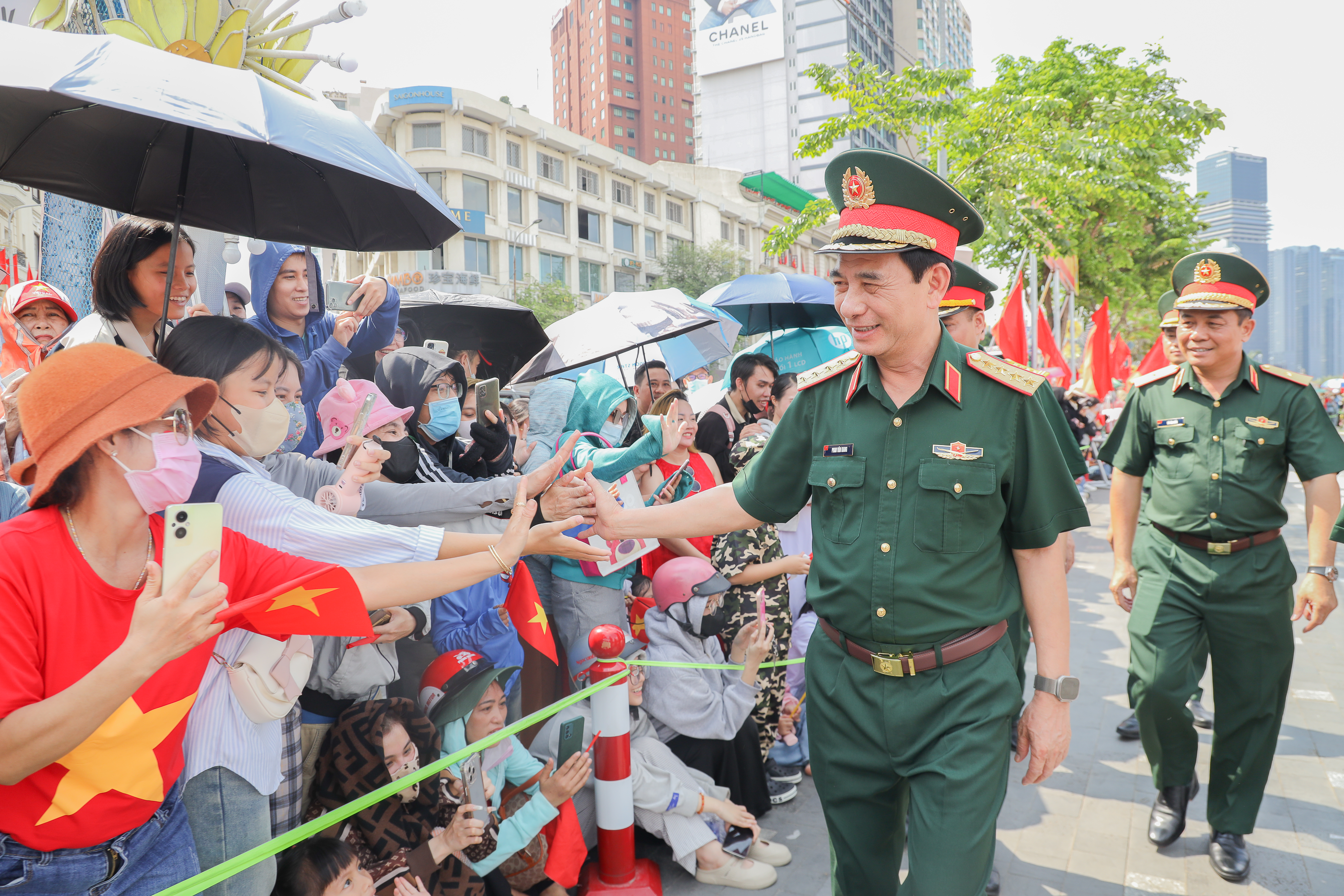 Đại tướng Phan Văn Giang, Ủy viên Bộ Chính trị, Phó bí thư Quân ủy Trung ương, Bộ trưởng Bộ Quốc phòng vui cùng Nhân dân tại TPHCM tham quan diễu binh, diễu hành.