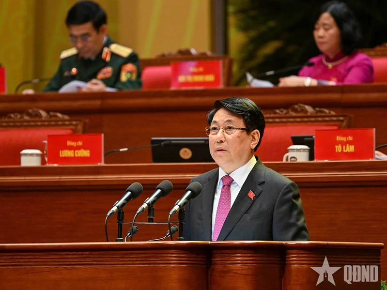 Chủ tịch nước Lương Cường trình bày Diễn văn khai mạc Đại hội XIV của Đảng.