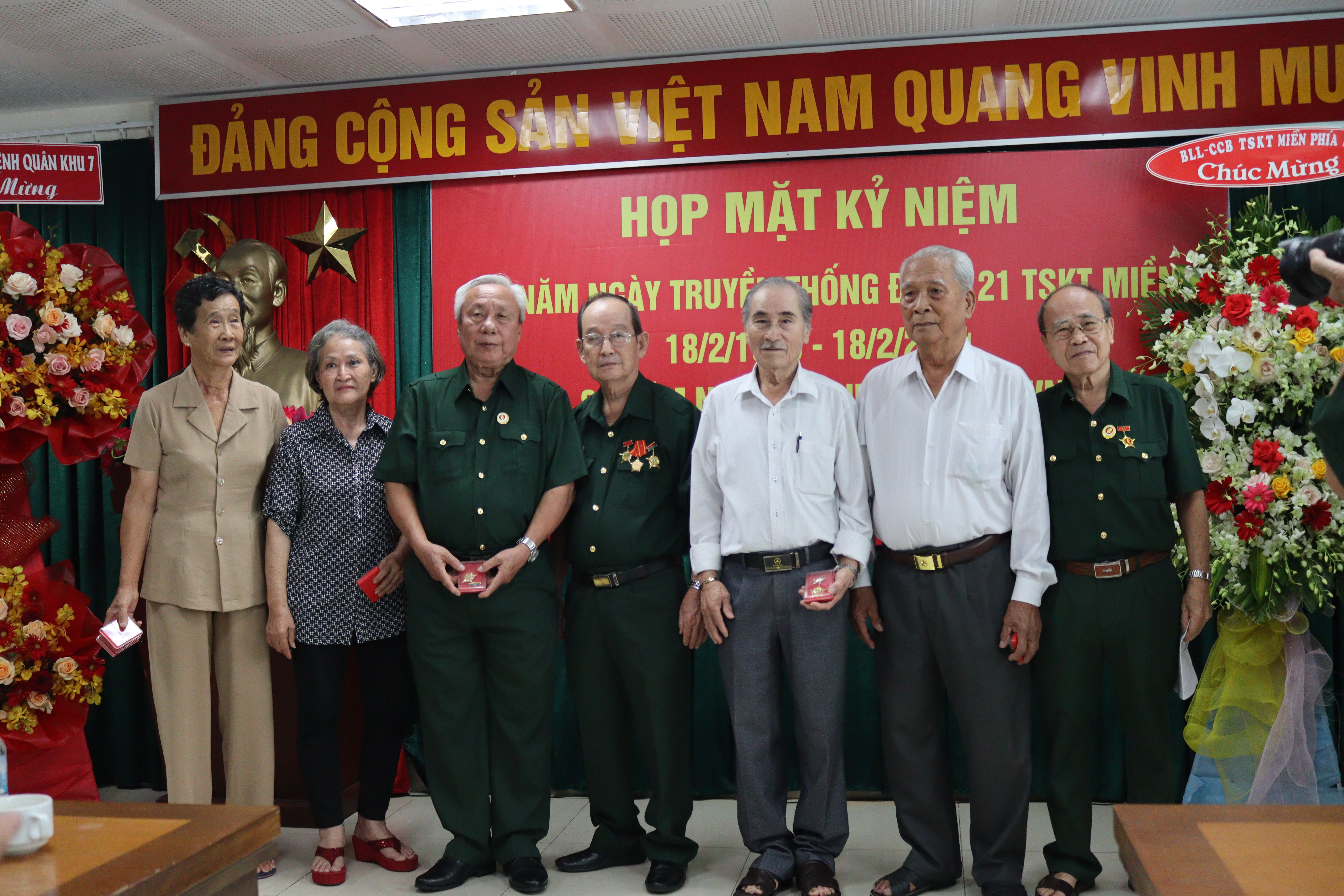 Dịp này, Ban liên lạc Đoàn 21 TSKT trao tặng kỷ niệm chương của Ban liên lạc Phòng Quân báo Miền cho các cựu chiến binh.