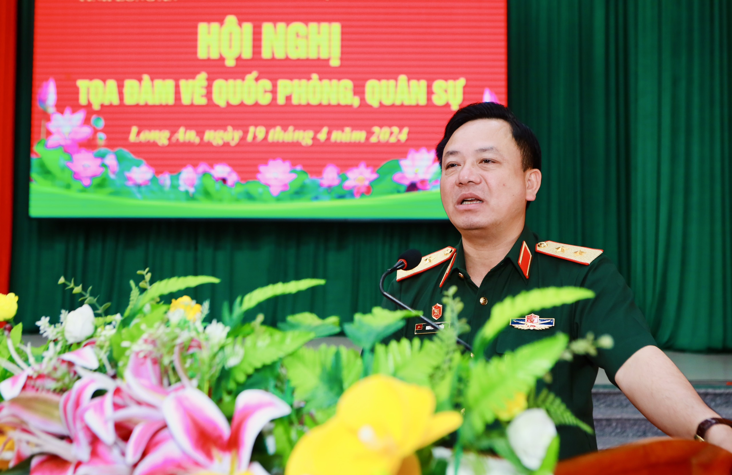 Phát biểu tại hội nghị, Trung tướng Nguyễn Anh Tuấn, Phó Giám đốc Học viện Quốc phòng đánh giá cao kết quả thực hiện công tác quốc phòng, quân sự địa phương và xây dựng khu vực thủ của tỉnh; công tác quản lý, bảo vệ chủ quyền quốc gia, trật tự an toàn xã hội khu vực biên giới của tỉnh Long An; tinh thần đoàn kết, quyết tâm của các đơn vị LLVT tỉnh trong thực hiện nhiệm vụ quốc phòng, quân sự địa phương.