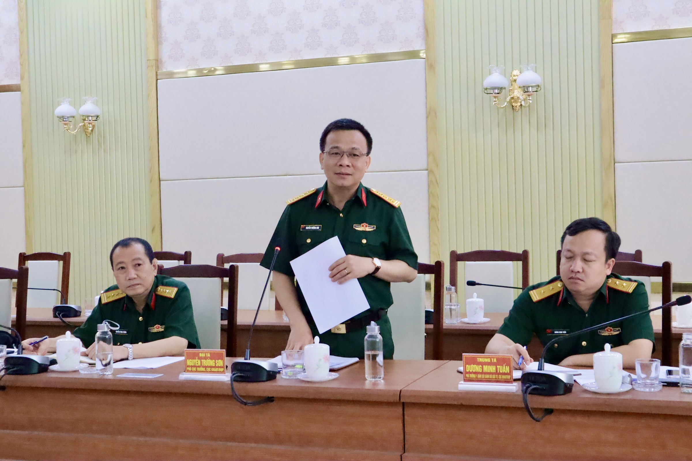 Đại tá Nguyễn Trường Sơn, Phó Cục trưởng Cục Kế hoạch Đầu tư phát biểu tại hội nghị.