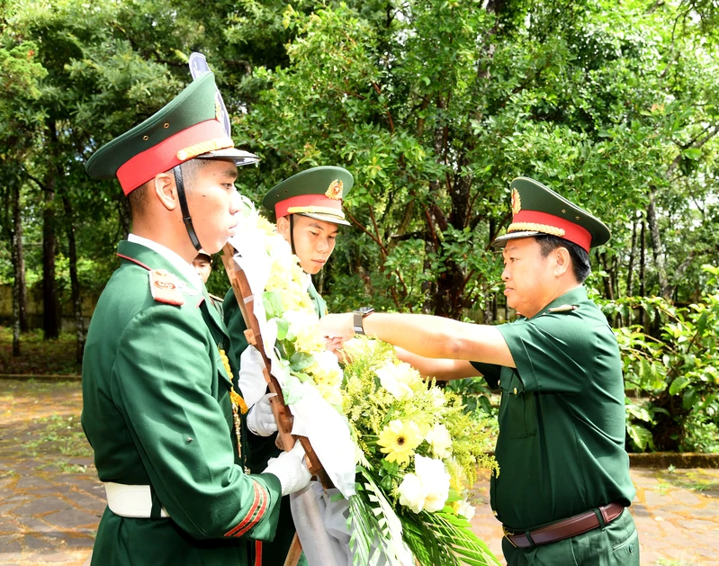 Trước anh linh các Anh hùng liệt sĩ, đoàn công tác bày tỏ lòng biết ơn sâu sắc và ôn lại truyền thống chiến đấu kiên cường, bất khuất của các thế hệ cán bộ, chiến sĩ đã hi sinh vì độc lập, tự do của Tổ quốc.