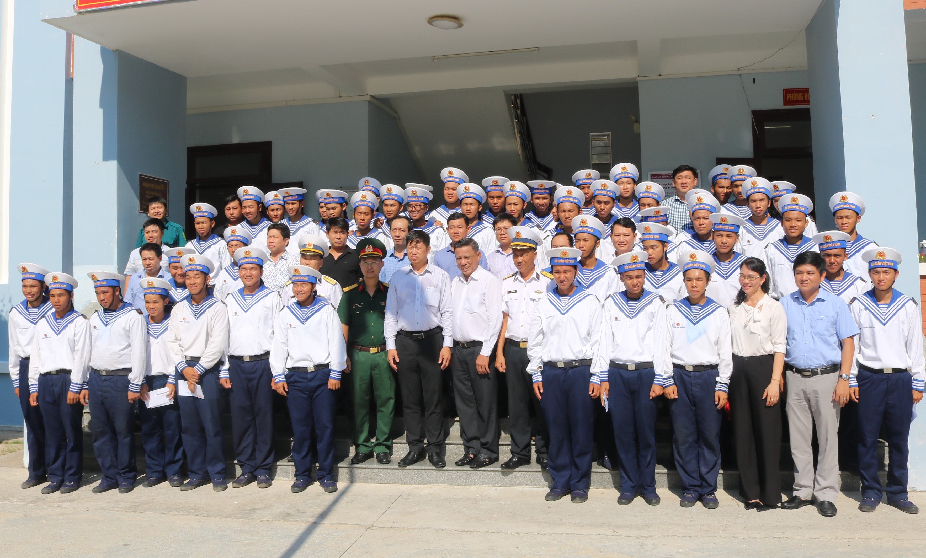 Các thành viên trong đoàn chụp ảnh lưu niệm với tân binh.