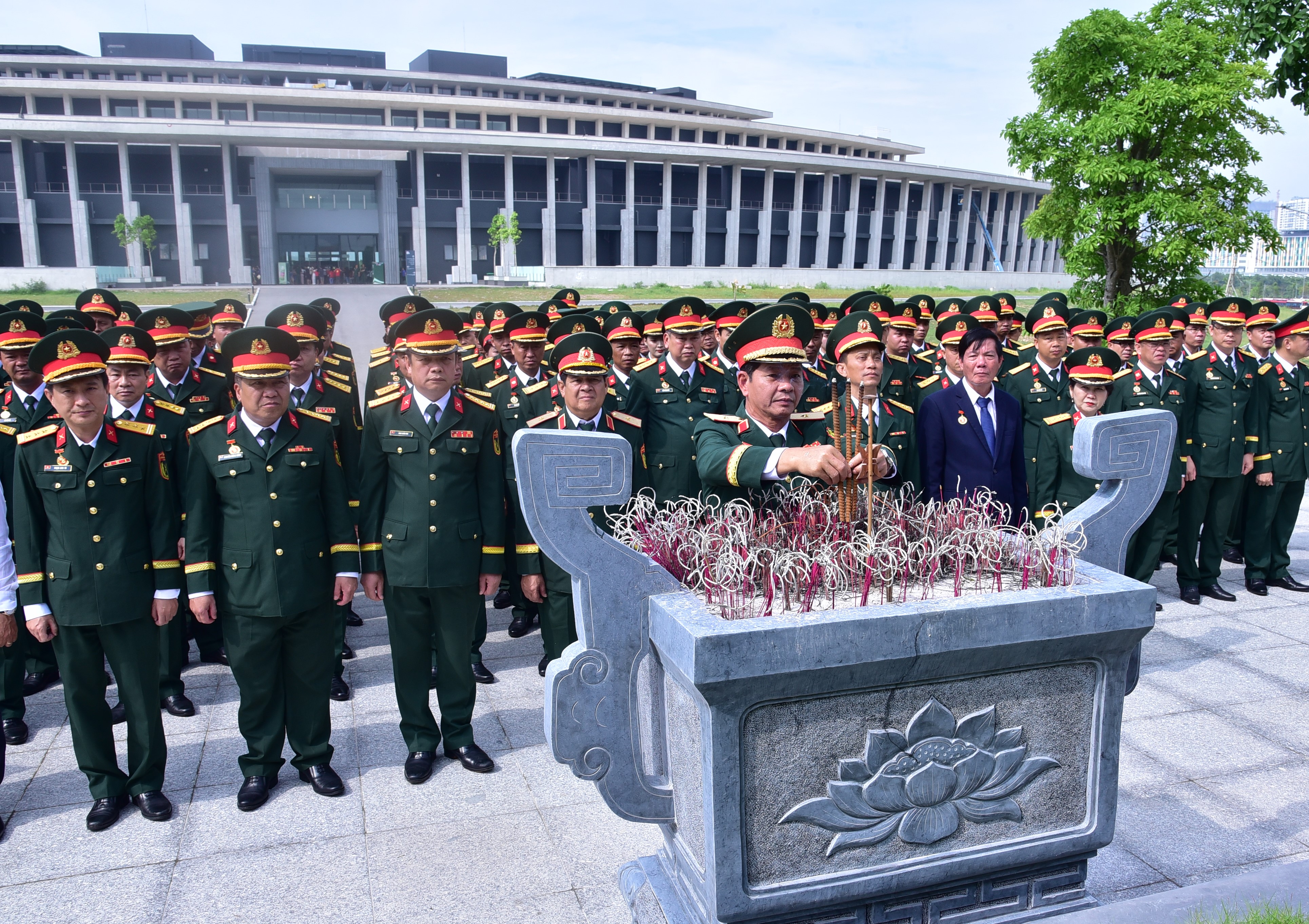 Đoàn đại biểu Quân khu dâng hương tại Đài tưởng niệm các anh hùng liệt sĩ.