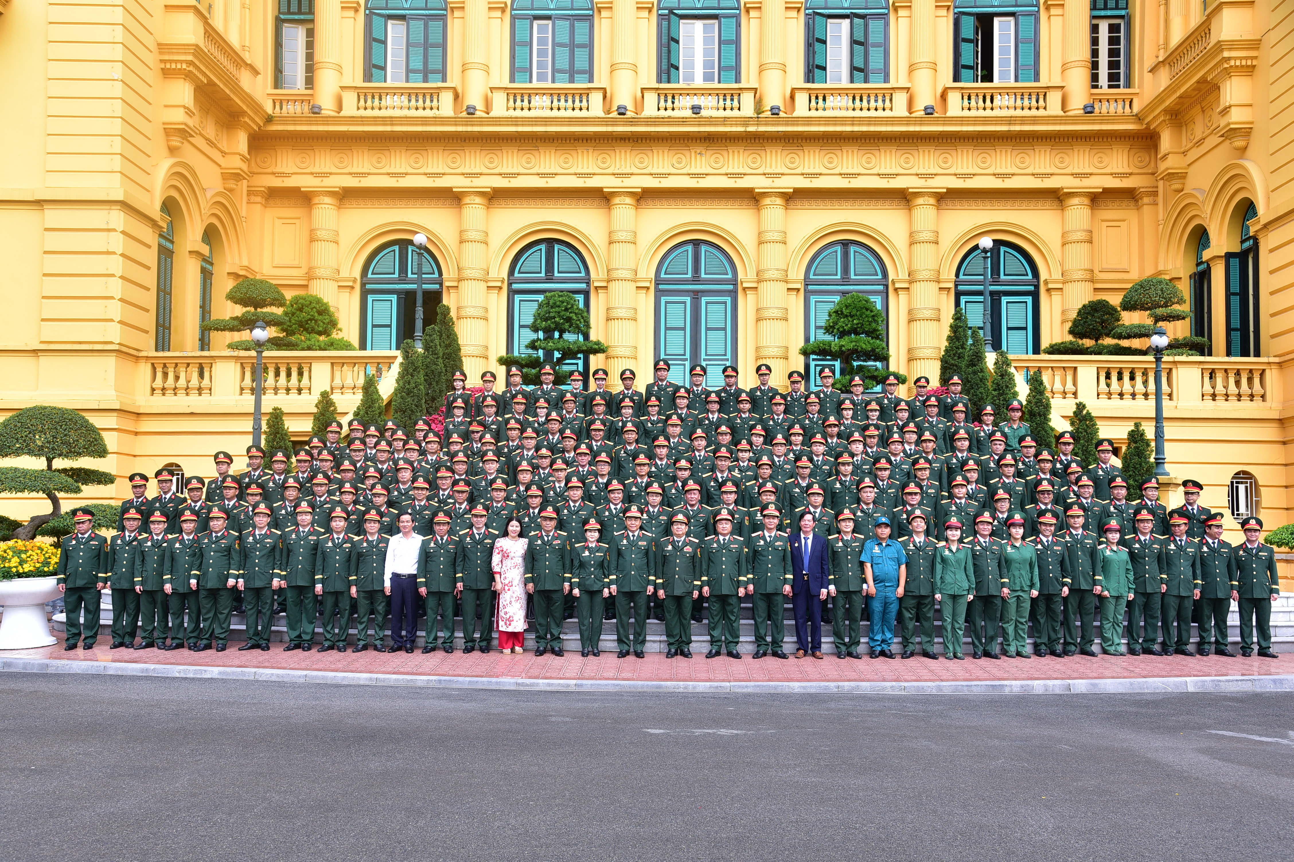 Đoàn đại biểu Quân khu chụp hình lưu niệm tại Phủ Chủ tịch.