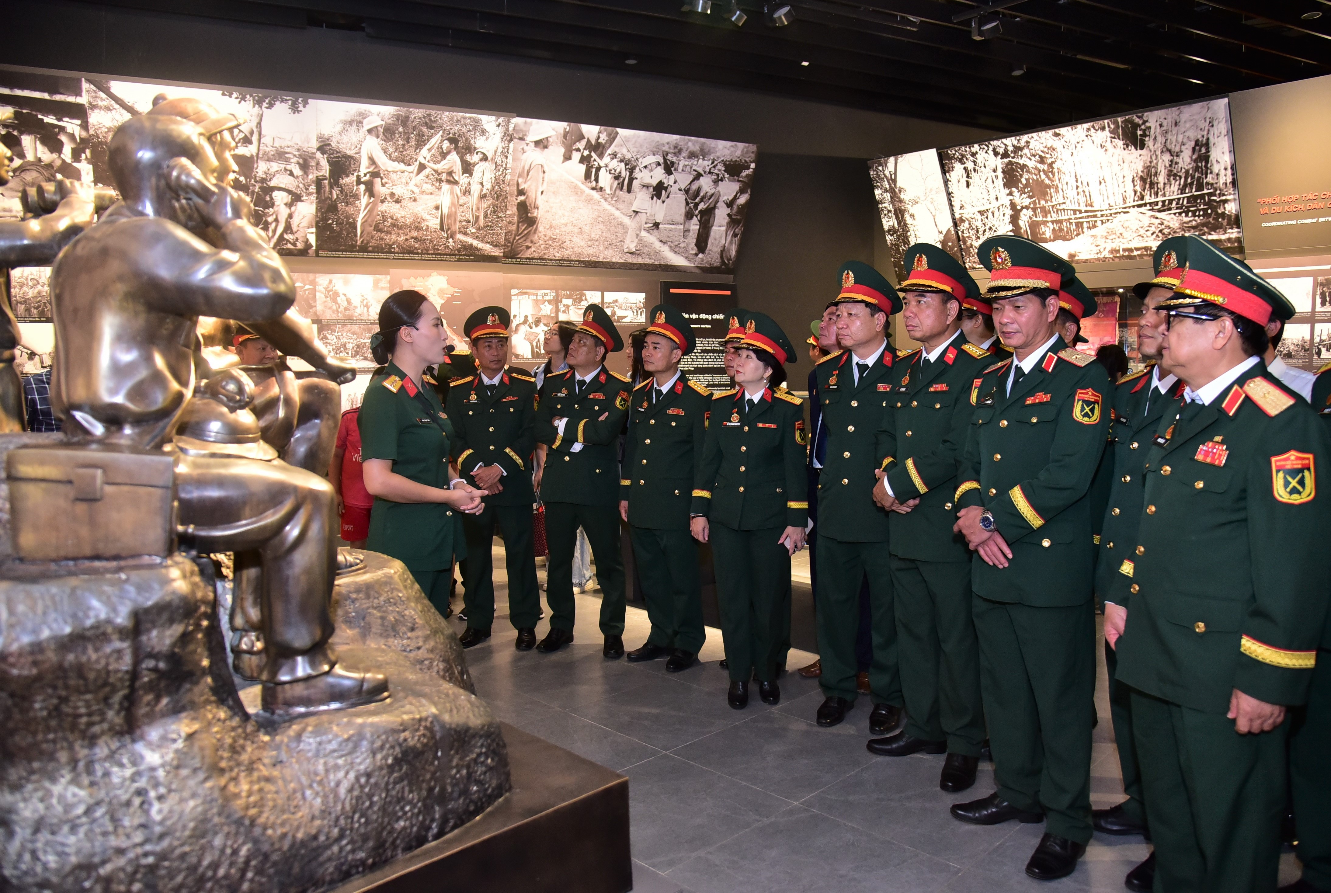 Thiếu tướng Trần Vinh Ngọc và các đại biểu tham quan Bảo tàng Lịch sử quân sự Việt Nam.