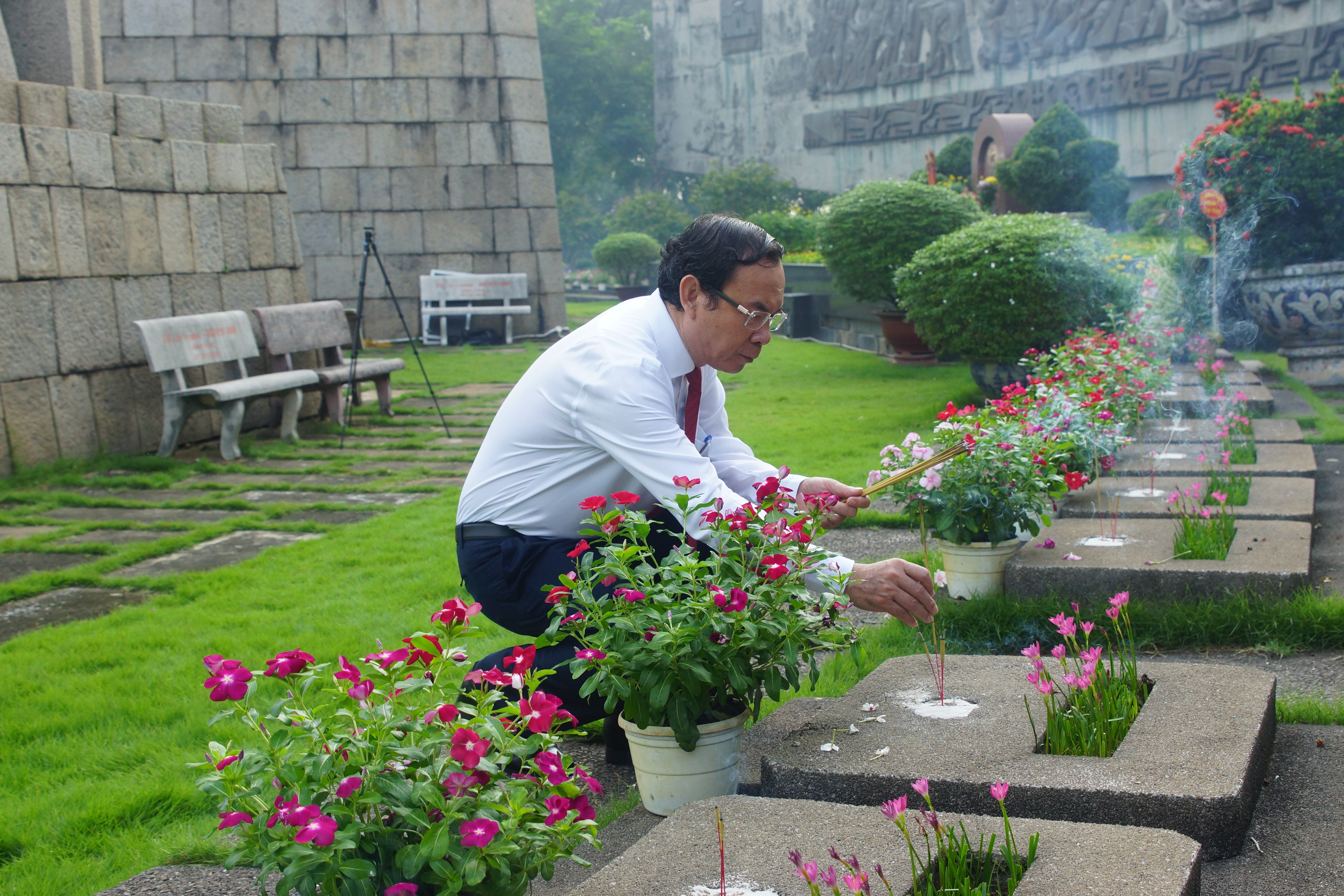 Đồng chí Nguyễn Văn Nên, , Ủy viên Bộ Chính trị, Bí thư Thành ủy Thành phố Hồ Chí Minh thắp hương lên các phần mộ