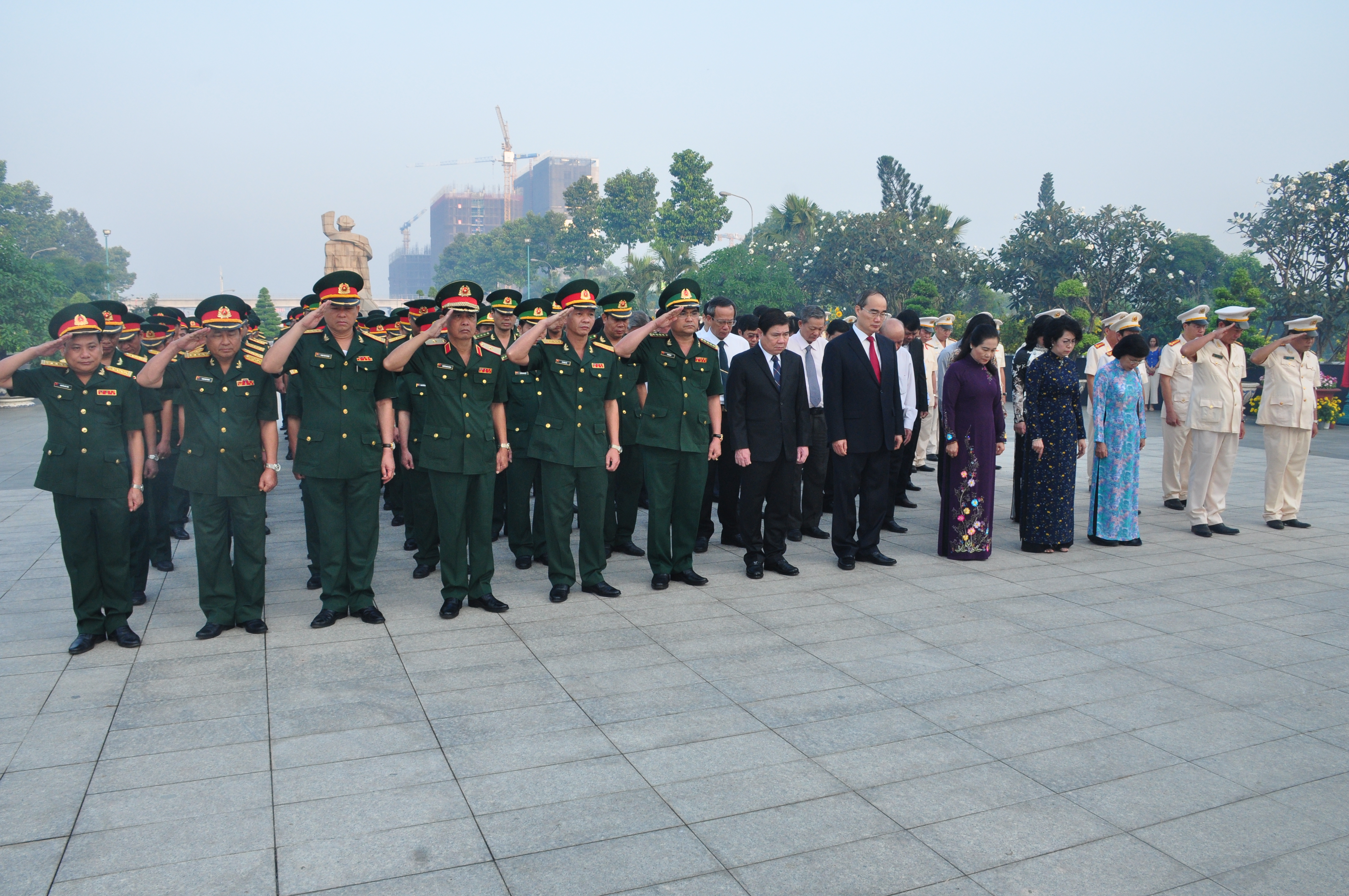 (QK7 Online) - Đoàn đại biểu Thành ủy - Hội đồng nhân dân - Ủy ban nhân dân - Ủy ban mặt trận Tổ quốc Việt Nam và các lực lượng vũ trang trên địa bàn Thành phố Hồ Chí Minh do đồng chí Nguyễn Thiện Nhân, Ủy viên Bộ Chính trị, Bí thư Thành ủy Tp. Hồ Chí Minh làm trưởng đoàn và đoàn đại biểu Bộ Tư lệnh Quân khu 7 do Thiếu tướng Nguyễn Minh Hoàng, Phó Chính ủy Quân khu 7 làm trưởng đoàn đến viếng, dâng hương tại Nghĩa trang Thành phố và Nghĩa trang Lạc Cảnh
