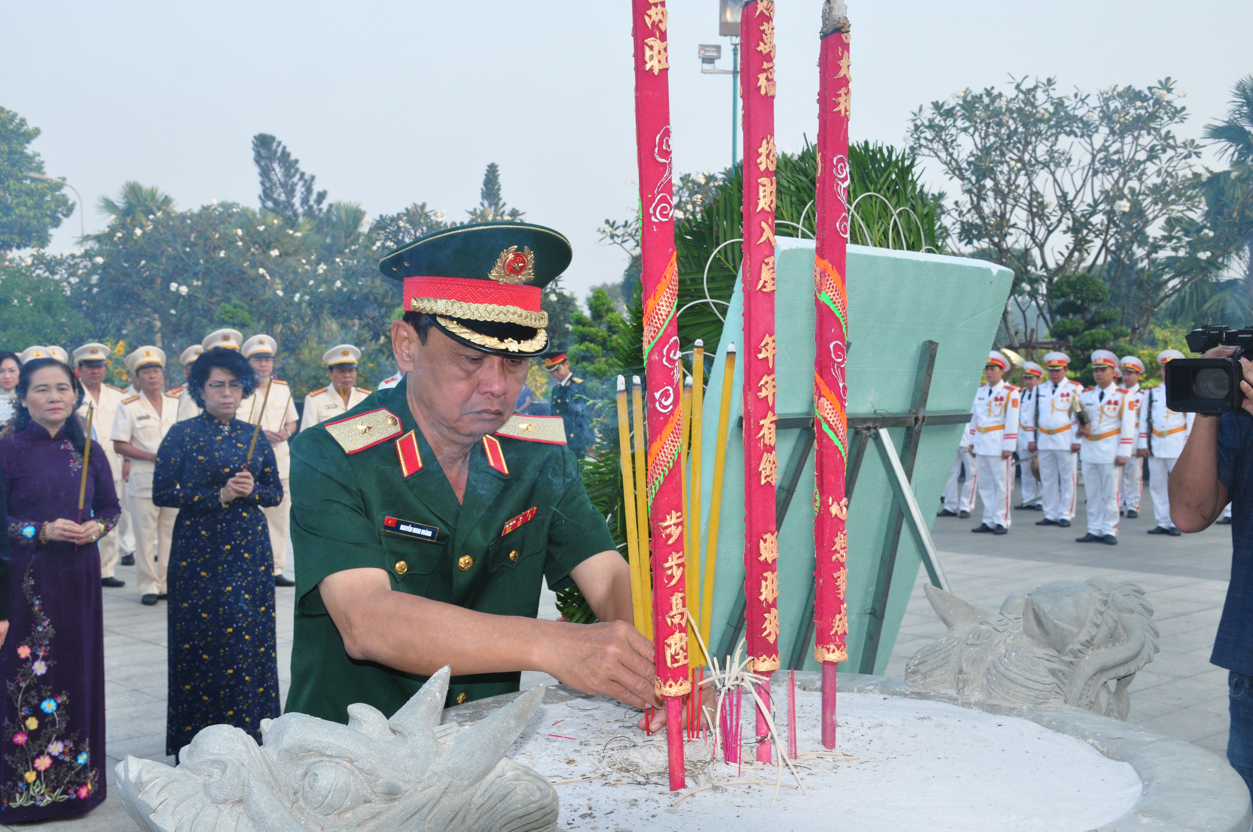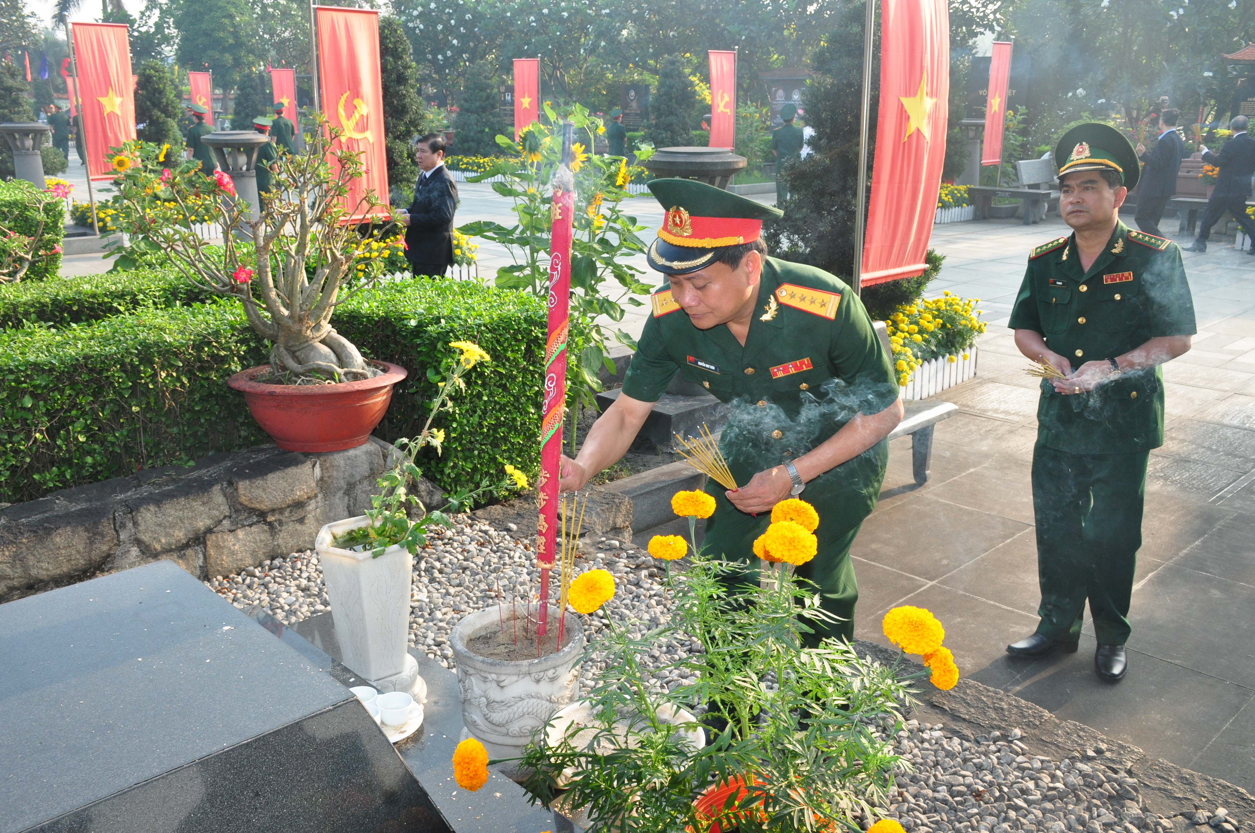 Thiếu tướng Nguyễn Minh Hoàng thắp hương tưởng nhớ các anh hùng liệt sĩ.