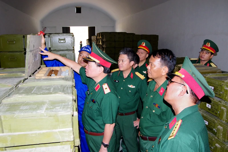 Đoàn công tác kiểm tra sắp xếp đạn dược trong kho Sư đoàn 309.
