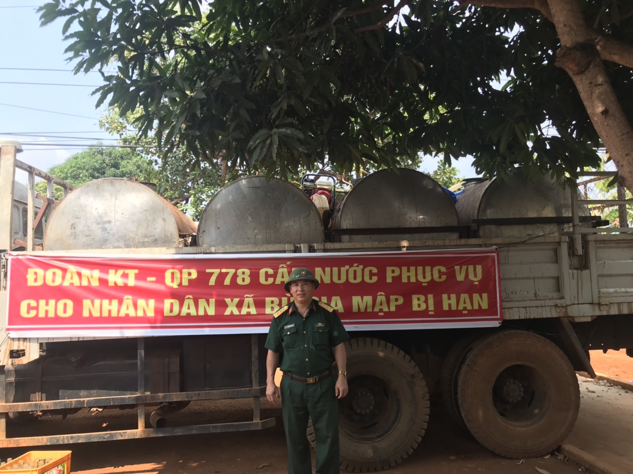 Chúng tôi cử 3 đồng chí tham gia cấp nước sinh hoạt cho người dân. Phương tiện đi kèm là xe Kamaz cùng máy bơm, nhiên liệu và các dụng cụ khác. Từ cuối tháng 3, đơn vị phối hợp với UBND xã triển khai cấp nước cho tất cả hộ có nhu cầu trên địa bàn đến khi xã có thông báo ngưng thì thôi. Từ việc cấp nước cho bà con, qua đó tiếp tục tăng cường mối đoàn kết quân - dân, thể hiện được phẩm chất tốt đẹp của Bộ đội Cụ Hồ vì dân phục vụ.