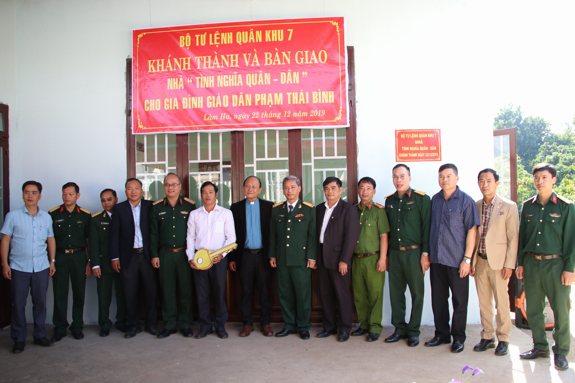 Thủ trưởng Bộ Tư lệnh Quân khu và chỉ huy Đoàn KT-QP trao tặng nhà tình nghĩa quân dân cho gia đình giáo dân huyện Lâm Hà, tỉnh Lâm Đồng