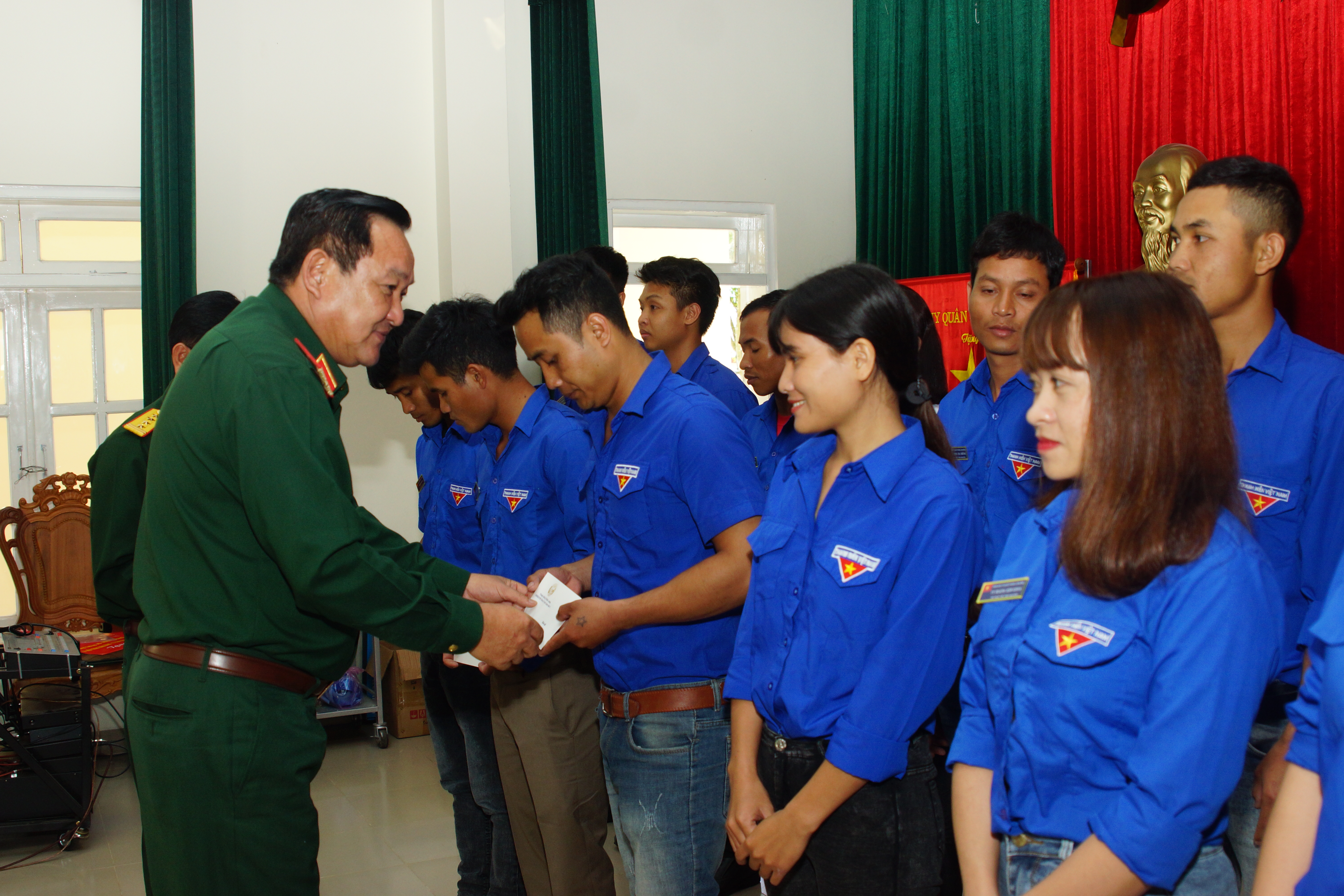 Trung tướng Võ Minh Lương, Ủy viên Trung ương Đảng, Tư lệnh Quân khu 7 tặng quà động viên trí thức trẻ tình nguyện