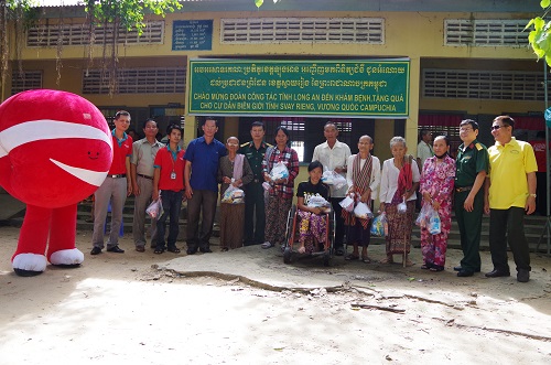 Đoàn công tác tỉnh Long An tặng quà cho người dân nghèo nước bạn