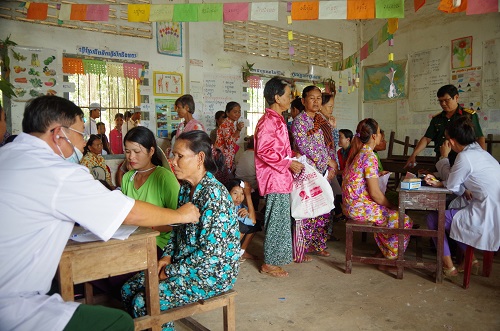 Các y bác sĩ quân dân y Long An tận tình khám bệnh cho người dân Campuchia