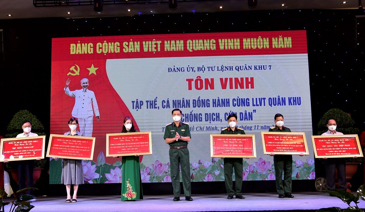 Đồng hành với Bộ Tư lệnh TP.HCM trong chương trình “100.000 phần quà hỗ trợ người dân khó khăn”, chị đã nhanh chóng triển khai phương án sản xuất để cung cấp các mặt hàng: Mỳ ăn liền, gạo, nước mắm, nước tương… với giá bán giảm từ 10 – 30% so với thị trường và cung cấp các gói an sinh hỗ trợ người dân. Sau đó tiếp tục sản xuất 120.000 phần quà cho Bộ Quốc phòng và Quân khu 7 để kịp thời trao tặng cho người dân khó khăn các tỉnh Đồng Nai, Bình Dương, Bà Rịa – Vũng Tàu, Tây Ninh và Long An.