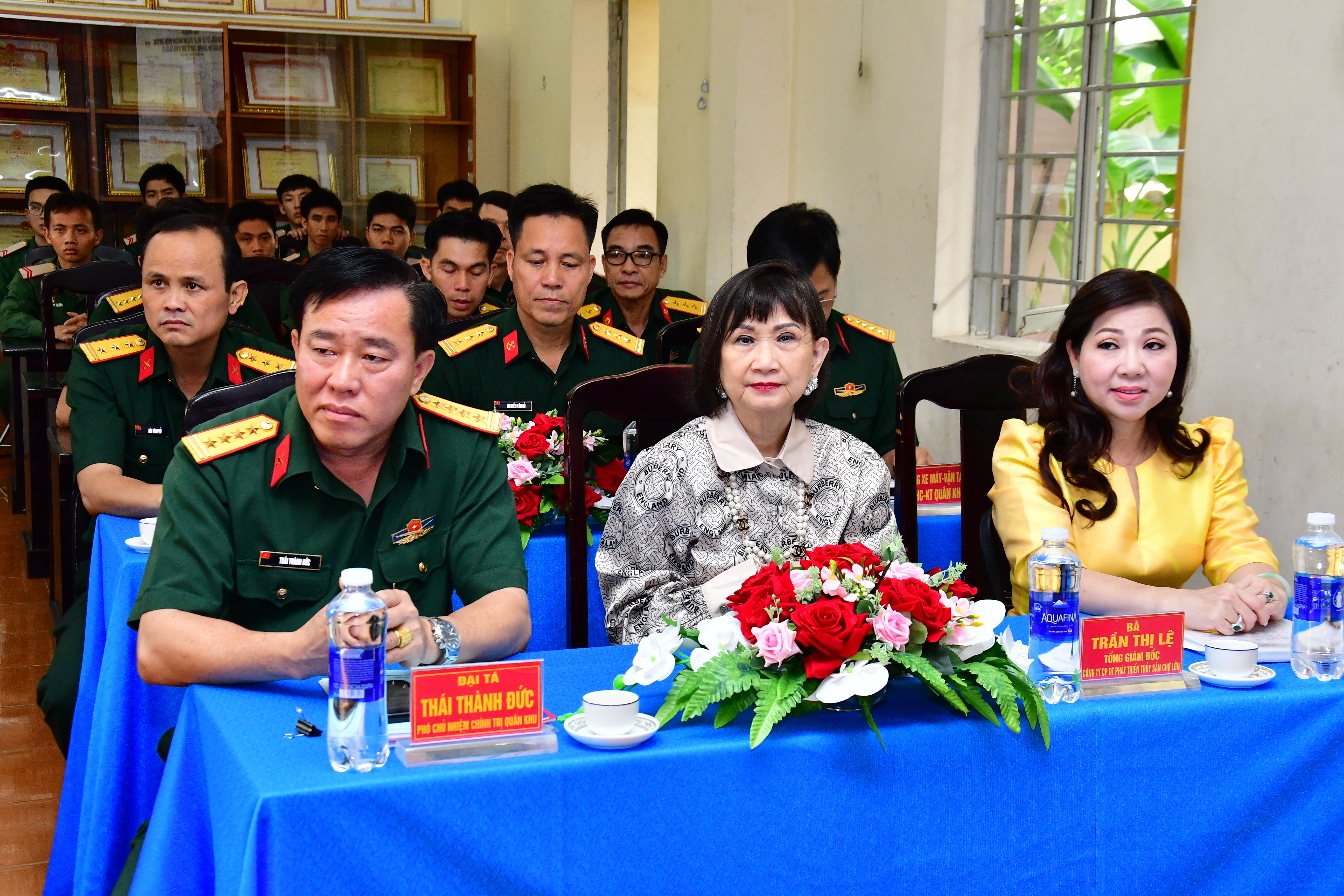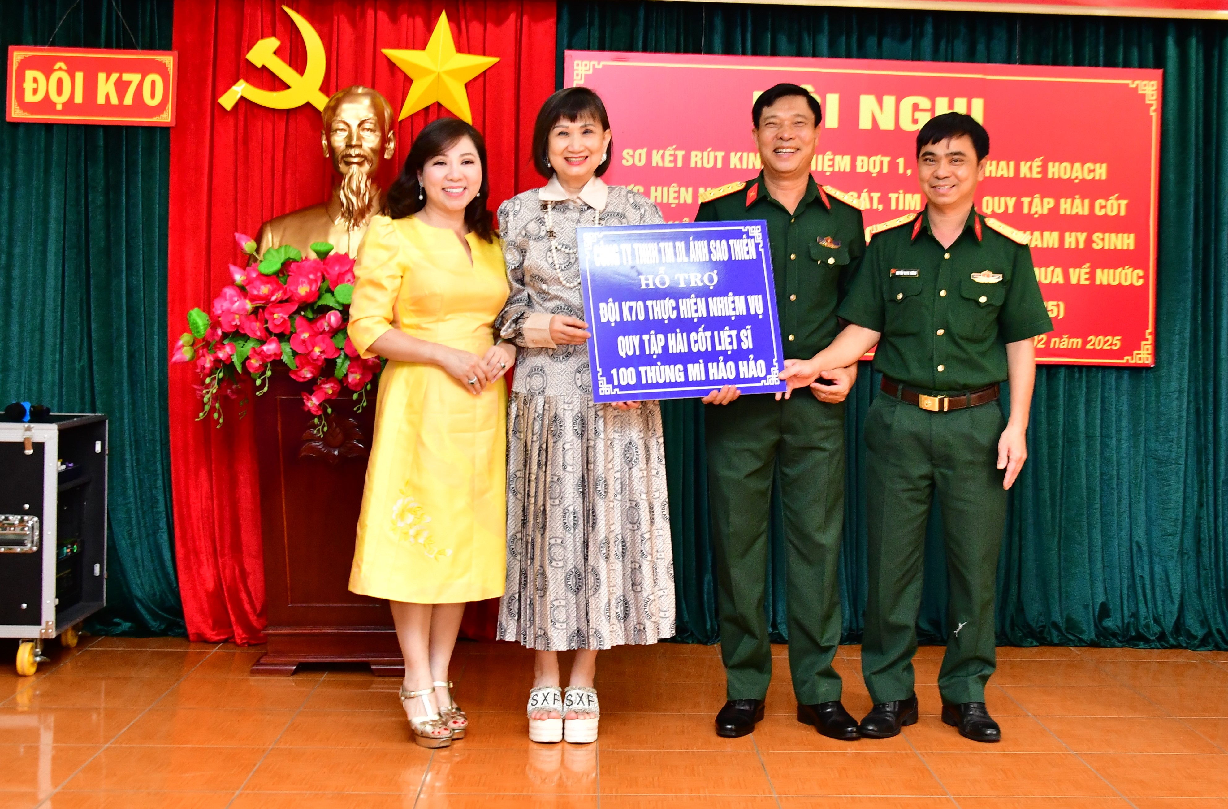 Đại tá Thái Thành Đức tặng quà của Cục Chính trị Quân khu cho Đội K70. Lãnh đạo Công ty TNHH TM DL Ánh Sao Thiên trao hỗ trợ cho Đội K70.