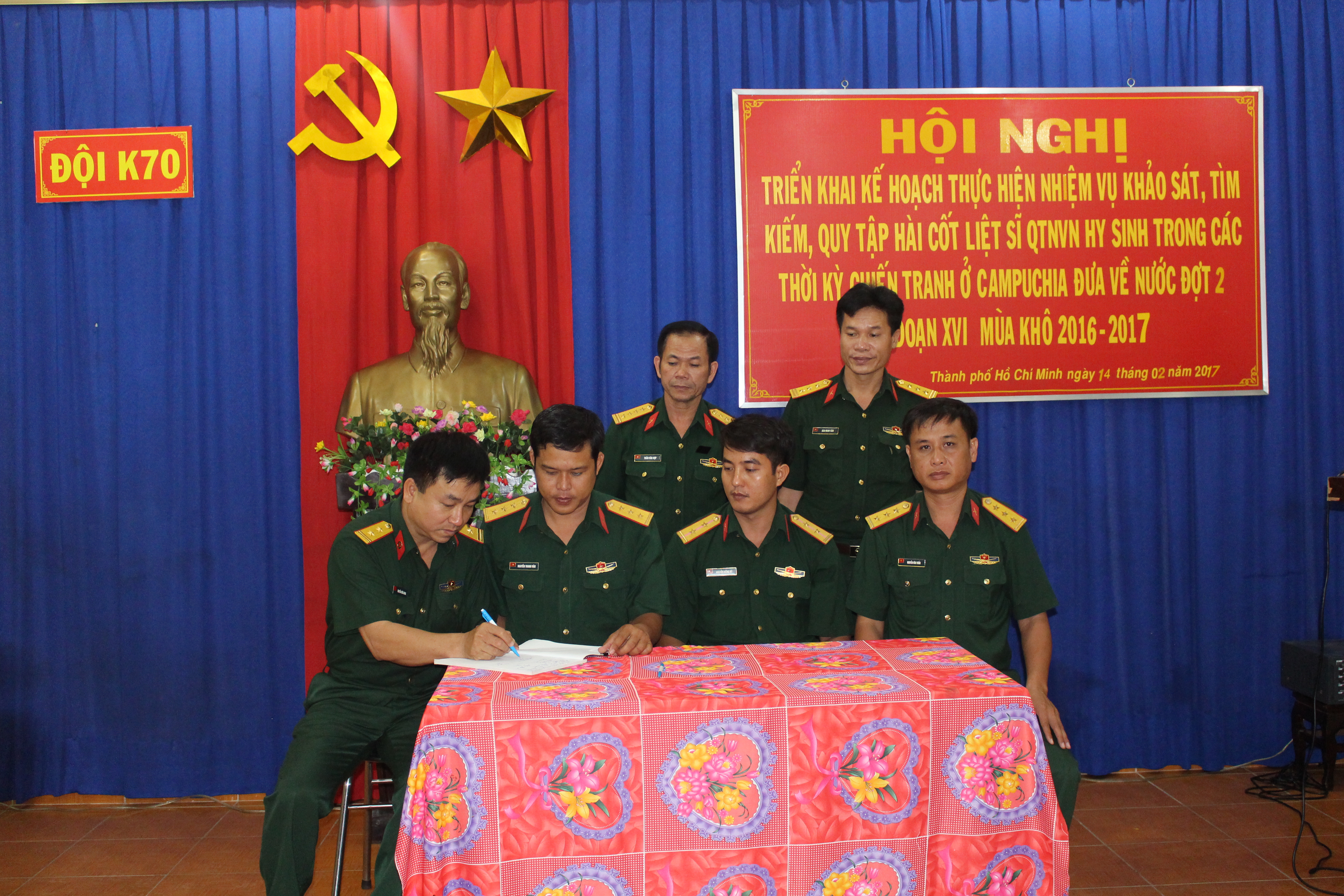 Với phương châm: “ Làm dứt điểm, phát hiện đến đâu, làm ngay đến đó; chủ động, sáng tạo,linh hoạt, tập trung rà soát kĩ địa bàn được phân công”. Đội K70 luôn xác định nhiệm vụ tìm kiếm, quy tập hài cốt liệt sĩ Quân tình nguyện Việt Nam hy sinh trong các thời kì chiến tranh ở Campuchia là một nhiệm vụ chính trị trọng tâm. Cán bộ, chiến sĩ trong đơn vị luôn xây dựng quyết tâm cao, khắc phục mọi khó khăn, hiệp đồng chặt chẽ với các Ban chuyên trách và các đơn vị Quân đội Hoàng gia Campuchia ; phát huy tinh thần trách nhiệm, tìm kiếm, quy tập hài cốt liệt sĩ đưa về nước theo đúng kế hoạch và đạt được kết quả cao.