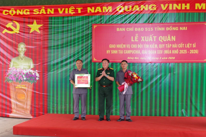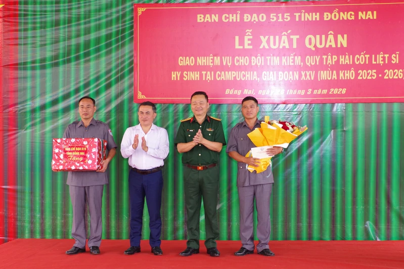 Tại buổi lễ, Bộ CHQS tỉnh Đồng Nai đã công bố quyết định của UBND tỉnh về việc cử lực lượng thực hiện nhiệm vụ tìm kiếm, quy tập hài cốt liệt sĩ đợt 2 tại hai tỉnh Kratie và Kampong Thom từ ngày 26/3 đến hết ngày 30/6/2026 và trao tặng nhiều phần quà ý nghĩa nhằm động viên cán bộ, chiến sĩ Đội K72 trước khi lên đường làm nhiệm vụ.