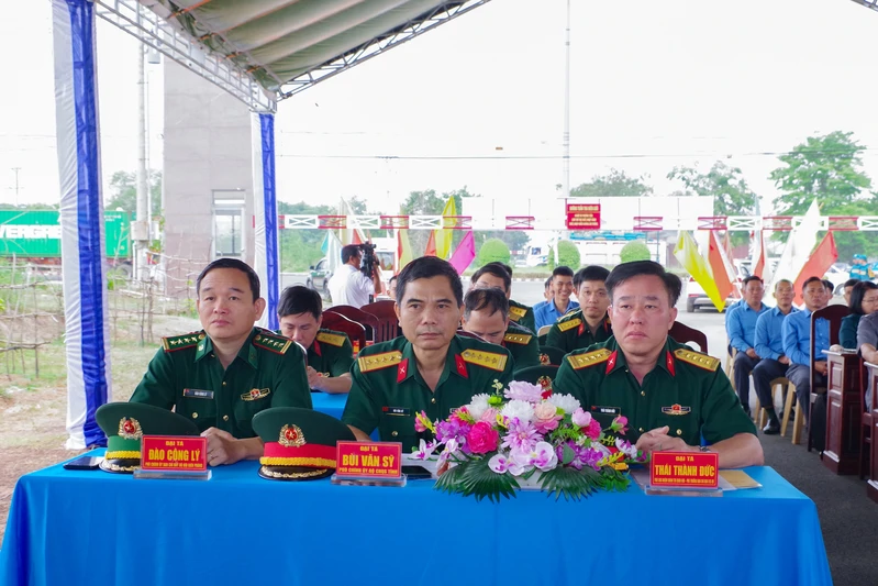 Đại tá Thái Thành Đức, Phó Chủ nhiệm Chính trị Quân khu 7, Phó Trưởng Ban Chỉ đạo 515 Quân khu (Bên phải ngoài cùng) dự buổi lễ.