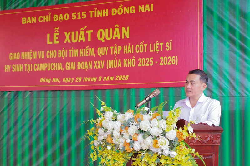 Phát biểu giao nhiệm vụ, đồng chí Lê Trường Sơn, Ủy viên Ban Thường vụ Tỉnh ủy, Phó Chủ tịch UBND tỉnh Đồng Nai biểu dương tinh thần chủ động, sự nỗ lực của cán bộ, chiến sĩ Đội K72 trong thời gian qua; đồng thời nhấn mạnh, nhiệm vụ tìm kiếm, quy tập hài cốt liệt sĩ là nhiệm vụ chính trị đặc biệt quan trọng, thể hiện đạo lý “Uống nước nhớ nguồn”, trách nhiệm và tình cảm sâu sắc của Đảng, Nhà nước, Quân đội và Nhân dân đối với các Anh hùng liệt sĩ đã hy sinh vì sự nghiệp bảo vệ Tổ quốc.