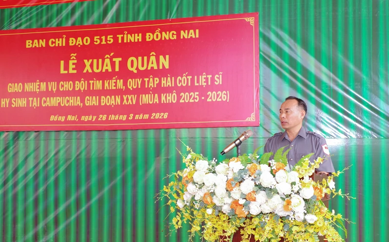 Lễ xuất quân giao nhiệm vụ cho Đội K72 (Bộ CHQS tỉnh Đồng Nai) thực hiện nhiệm vụ tìm kiếm, quy tập hài cốt liệt sĩ hy sinh tại Campuchia giai đoạn XXV (mùa khô 2025-2026).