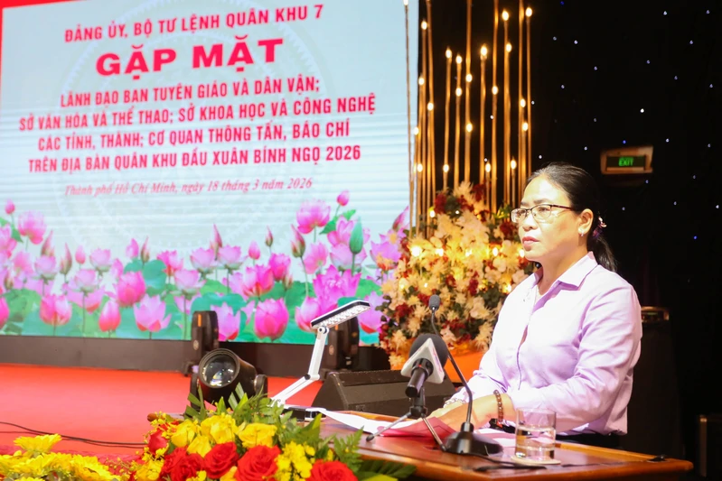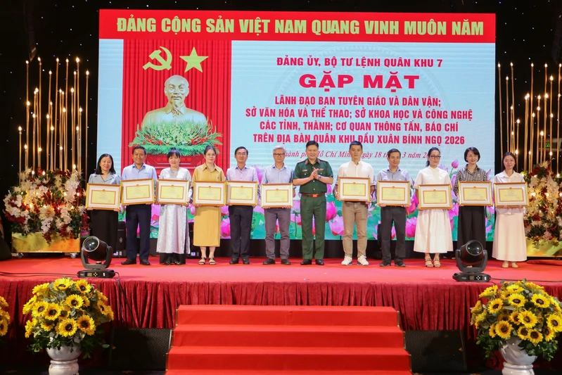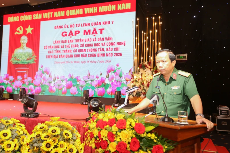 (QK7 Online) – Ngày 18/3, Đảng ủy, Bộ Tư lệnh Quân khu 7 tổ chức gặp mặt lãnh đạo các Ban Tuyên giáo và Dân vận; Sở Văn hóa - Thể thao Thành phố Hồ Chí Minh; Sở Văn hóa Thể thao và Du lịch; Sở Khoa học và Công nghệ các tỉnh, thành phố; các cơ quan thông tấn, báo chí Trung ương, Quân đội và địa phương trên địa bàn Quân khu đầu Xuân Bính Ngọ năm 2026.