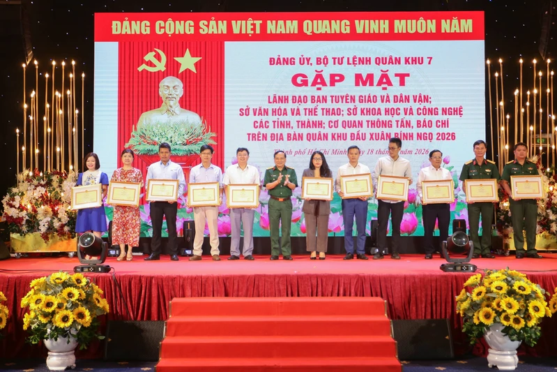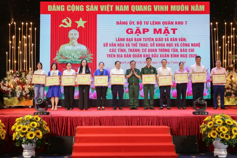 Dịp này, Quân khu 7 tặng bằng khen cho 31 tập thể và 63 cá nhân có thành tích xuất sắc trong phối hợp tuyên truyền hoạt động của lực lượng vũ trang Quân khu thời gian qua.