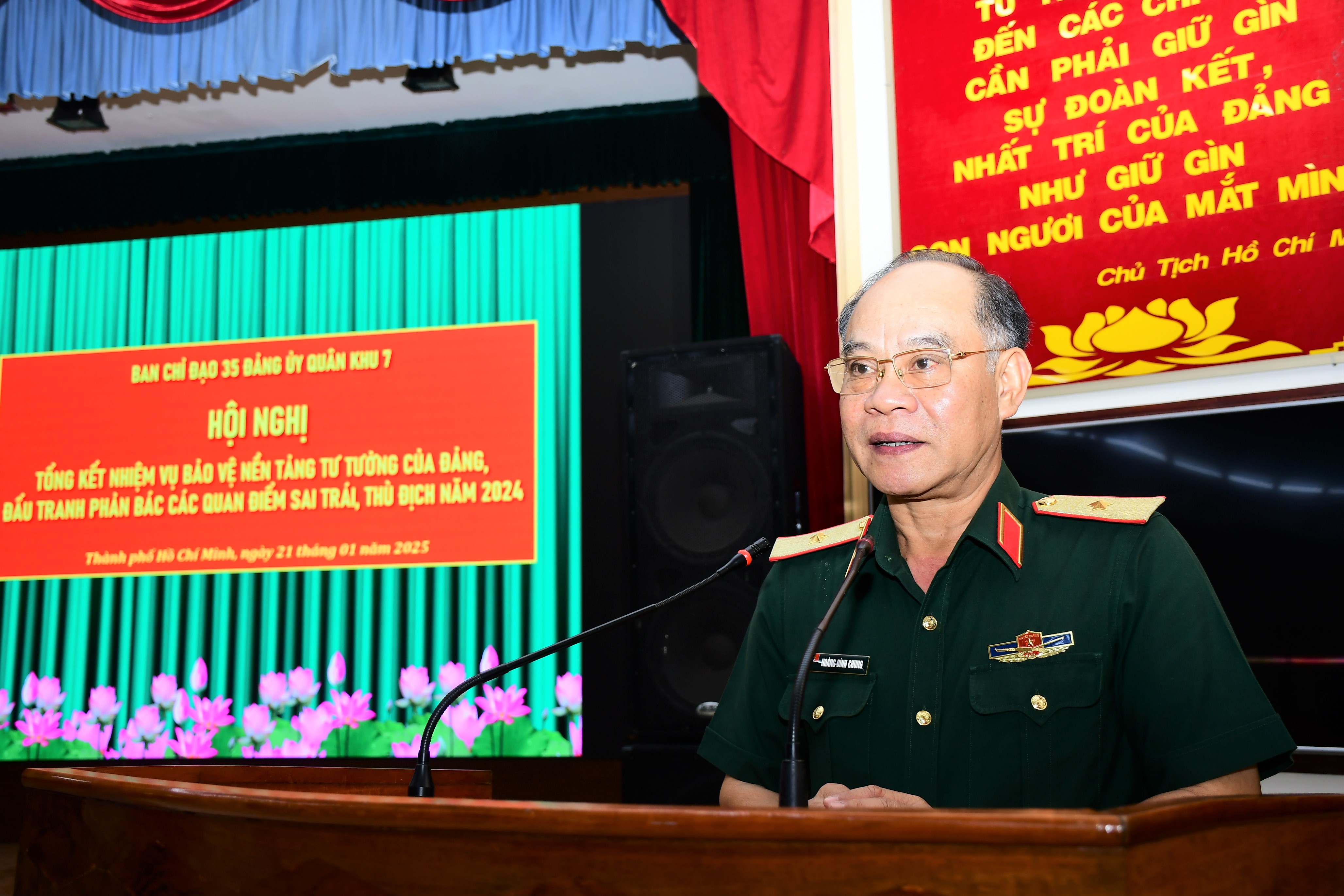 Phát biểu kết luận tại hội nghị, Trung tướng Trần Hoài Trung, Bí thư Đảng ủy, Chính ủy Quân khu yêu cầu cấp ủy, chỉ huy, Ban Chỉ đạo 35 các cấp cần quán triệt sâu sắc sự lãnh đạo, chỉ đạo của Đảng, Nhà nước, Quân ủy Trung ương, Bộ Quốc phòng, Đảng ủy, Bộ Tư lệnh Quân khu về bảo vệ nền tảng tư tưởng của Đảng, đấu tranh phản bác các quan điểm sai trái thù địch, thông tin xấu độc. Tăng cường vai trò lãnh đạo, chỉ đạo của các cấp ủy Đảng, chính ủy, chính trị viên, người chỉ huy và cơ quan chính trị các cấp trong đấu tranh chống quan điểm sai trái, thù địch trên môi trường mạng xã hội. Xây dựng bản lĩnh chính trị vững vàng, trang bị cho cán bộ, chiến sĩ phương pháp xem xét, tiếp cận, xử lý thông tin. Tích cực xây dựng môi trường văn hóa trong sạch, lành mạnh, ngăn chặn có hiệu quả các tệ nạn, tiêu cực từ bên ngoài thẩm thấu, tác động đến bộ đội, khắc phục những biểu hiện tiêu cực về đạo đức, lối sống, góp phần giữ vững phẩm chất tốt đẹp của “Bộ đội Cụ Hồ” trong thời kỳ mới.