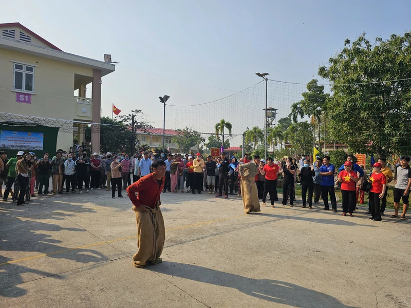 Trò chơi nhảy bao bố thu hút đông đảo mọi người tham gia.