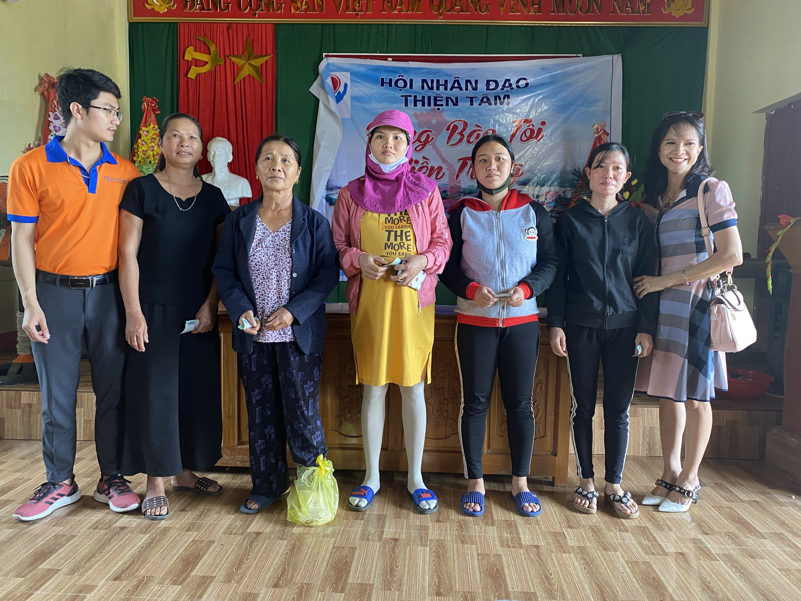 Đến với Huế, đoàn ghé thăm xã Quang Vinh, huyện Quảng Điền, Thừa Thiên Huế và trao tặng gần 100 triệu đồng cho 60 người tàn tật và khiếm thị.