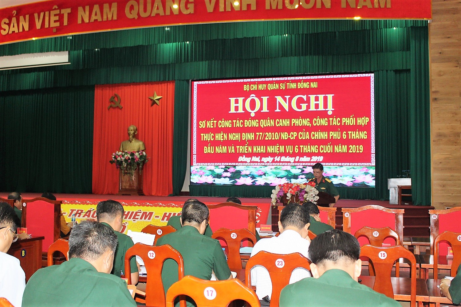 Phó Chủ tịch UBND tỉnh Đồng Nai Nguyễn Hòa Hiệp đánh giá cao công tác phối hợp giữa Bộ CHQS tỉnh với các đơn vị Quân đội, Công an và các lực lượng chức năng trên địa bàn theo tinh thần Nghị định 77 của Chính phủ, góp phần làm tình hình an ninh trật tự được giữ vững, ổn định, kinh tế tiếp tục phát triển, quốc phòng an ninh được củng cố, kịp thời đấu tranh ngăn chặn các hoạt động gây mất ANTT.