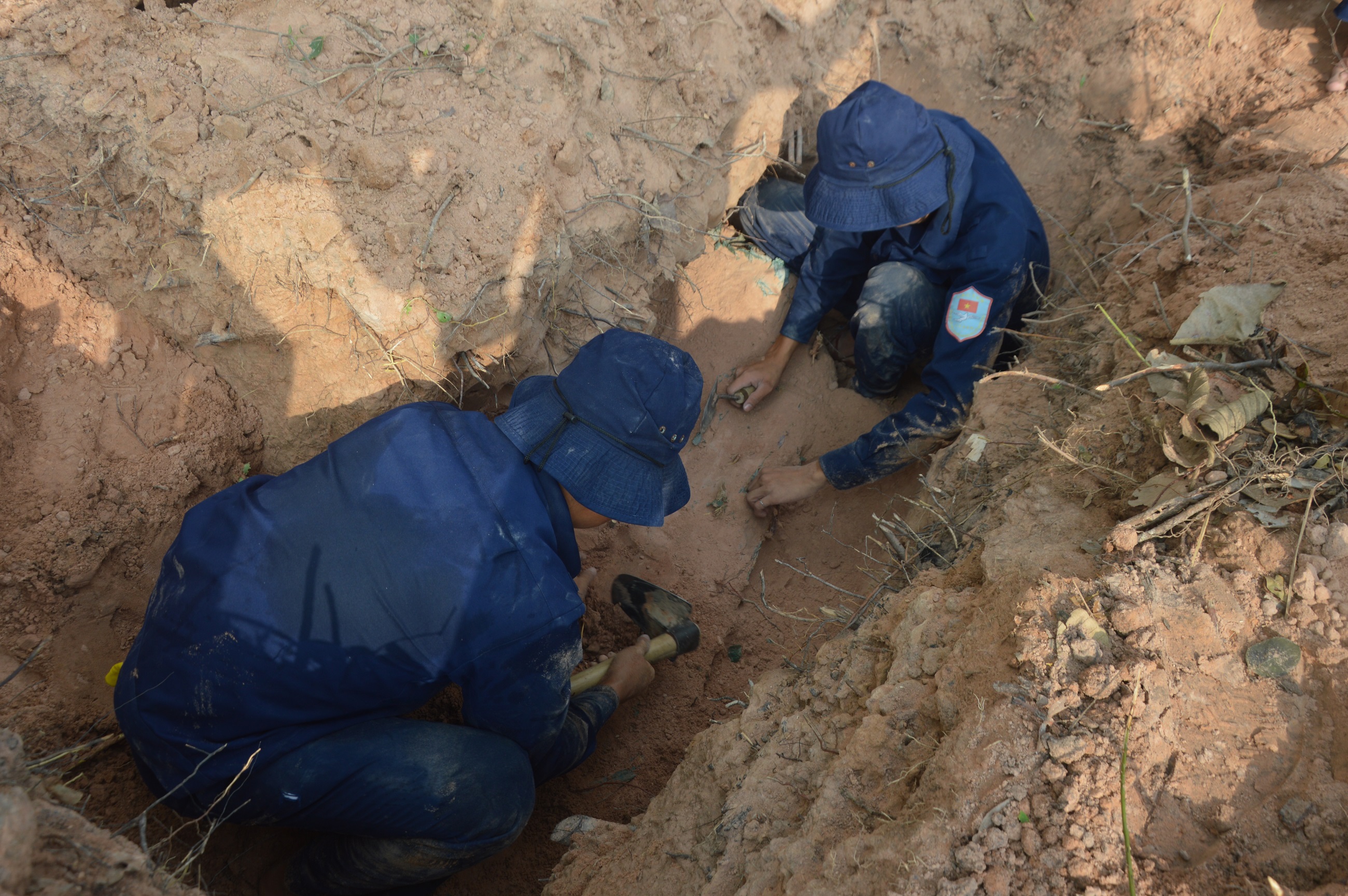 Những cánh rừng rậm rạp, những con đường hiểm trở trên đất bạn Campuchia cũng không ngăn được bước chân người lính hôm nay đi tìm đồng đội. Hàng trăm nghìn mét khối đất đá đã được các đội K đào tìm. Dưới cái nắng bỏng rát, mồ hôi đẫm áo, ánh mắt cay xè, các anh đã vỡ òa cảm xúc khi tìm thấy các HCLS. Với chiến sĩ Lê Xuân Hậu, Đội K70, Cục Chính trị, Quân khu 7, giai đoạn mùa khô 2022- 2023 là lần thứ 2 anh được tham gia thực hiện nhiệm vụ thiêng liêng trên đất bạn: Khó khăn lớn nhất là nắng nóng, có những thời điểm lên đến gần 40oC, thực hiện nhiệm vụ đào tìm giữa khoảng đất trống trơ, không có lấy một bóng cây làm cho anh em tốn rất nhiều sức. “Buồn nhất là khi đào tìm vất vả cả mấy ngày, nhưng không phát hiện được HCLS, nhưng được sự quan tâm và chuẩn bị chu đáo của các anh, các chú chỉ huy đơn vị đã giúp tôi và đồng đội vượt qua, cố gắng làm hết sức để hoàn thành tốt nhiệm vụ được giao”. Chiến sĩ Lê Văn Hậu kể.