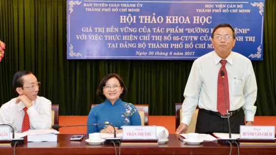 Hội thảo khoa học Giá trị bền vững của tác phẩm "Đường kách mệnh" với việc thực hiện Chỉ thị số 05-CT/TW của Bộ Chính trị tại Đảng bộ TPHCM. Ảnh: VIỆT DŨNG