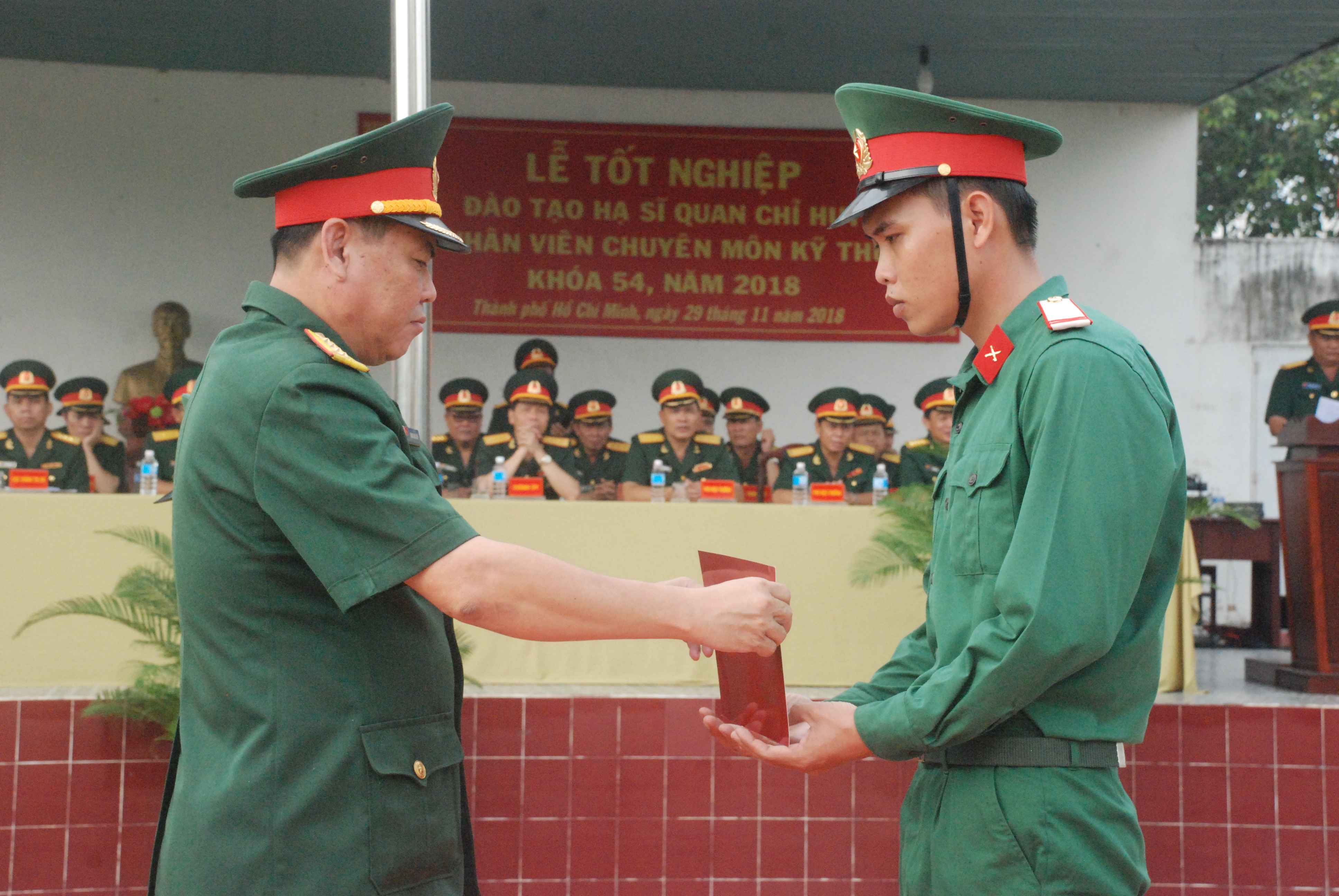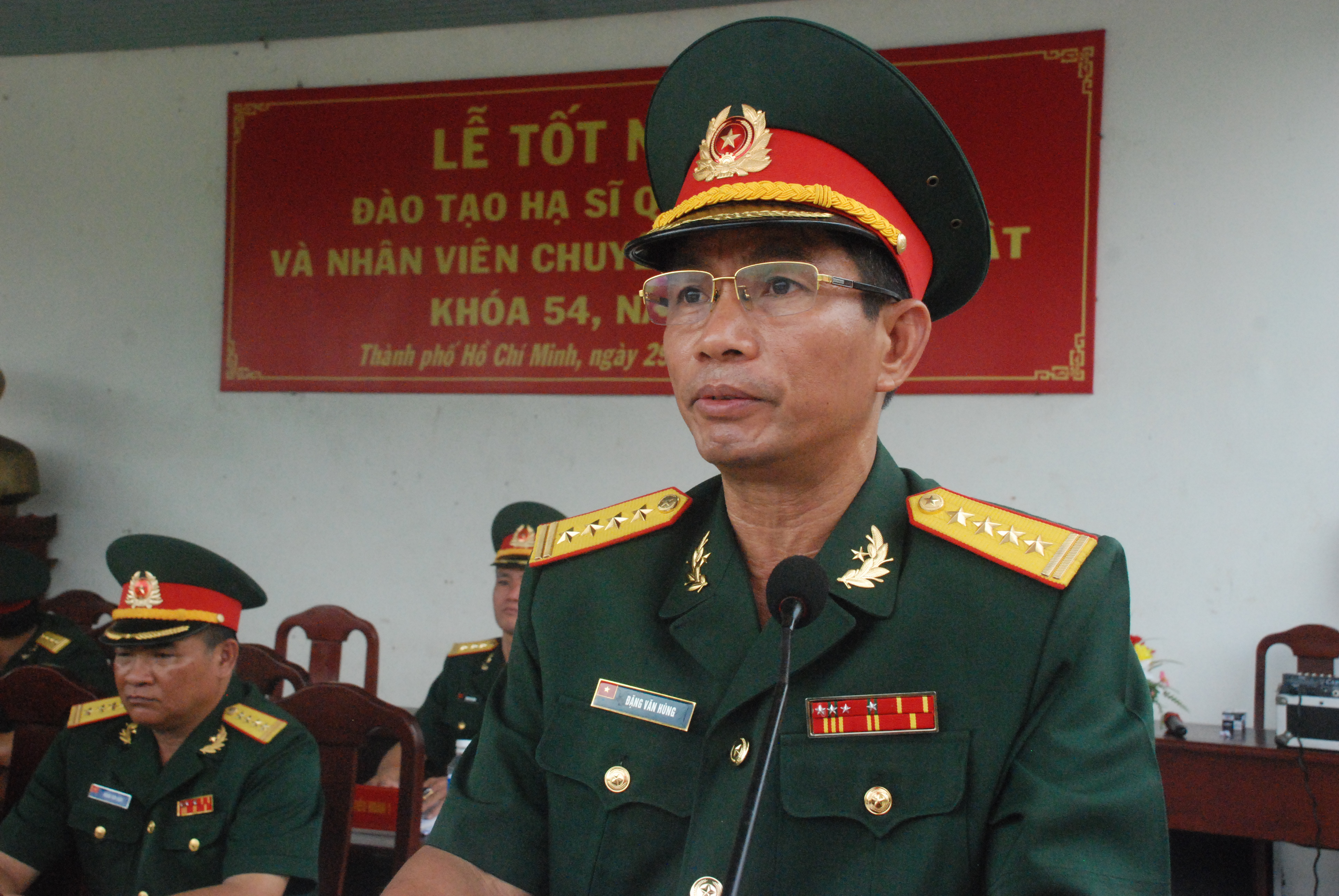 Đại tá Đặng Văn Hùng, Phó Tham mưu trưởng Quân khu phát biểu tại lễ tốt nghiệp