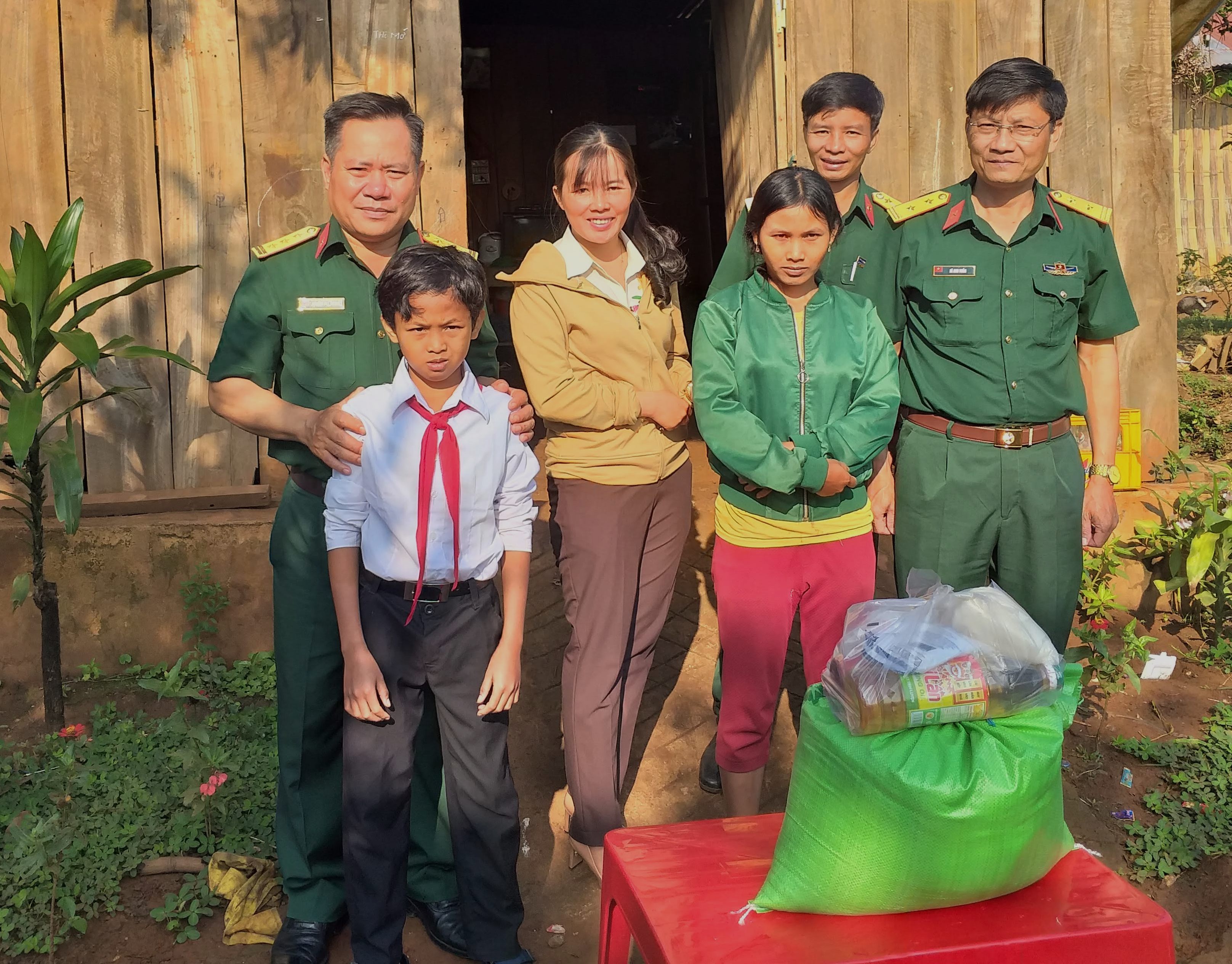 Đại tá Nguyễn Duy Dương, Chính ủy Đoàn KT-QP 778 trao quà hỗ trợ học sinh nghèo trên địa bàn huyện Bù Gia Mập