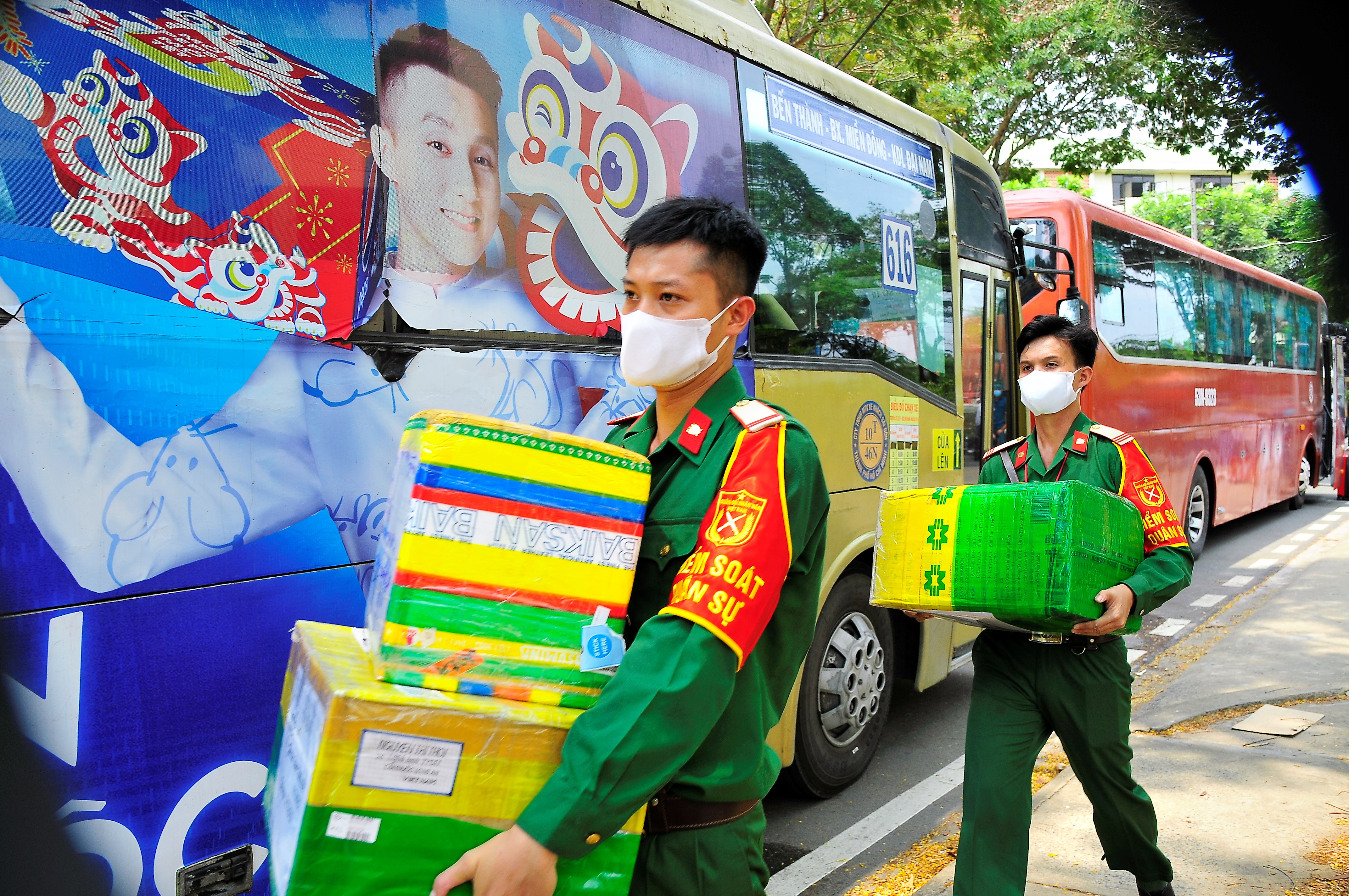 Ngay từ sáng sớm, Bộ Tư lệnh Thành phố điều 20 xe từ 16 đến 45 chỗ đến khu cách ly đưa bà con về, đặc biệt là giải quyết nhanh chóng cho những người ra sân bay để trở về các địa phương xa ở các tỉnh miền Trung và miền Bắc.