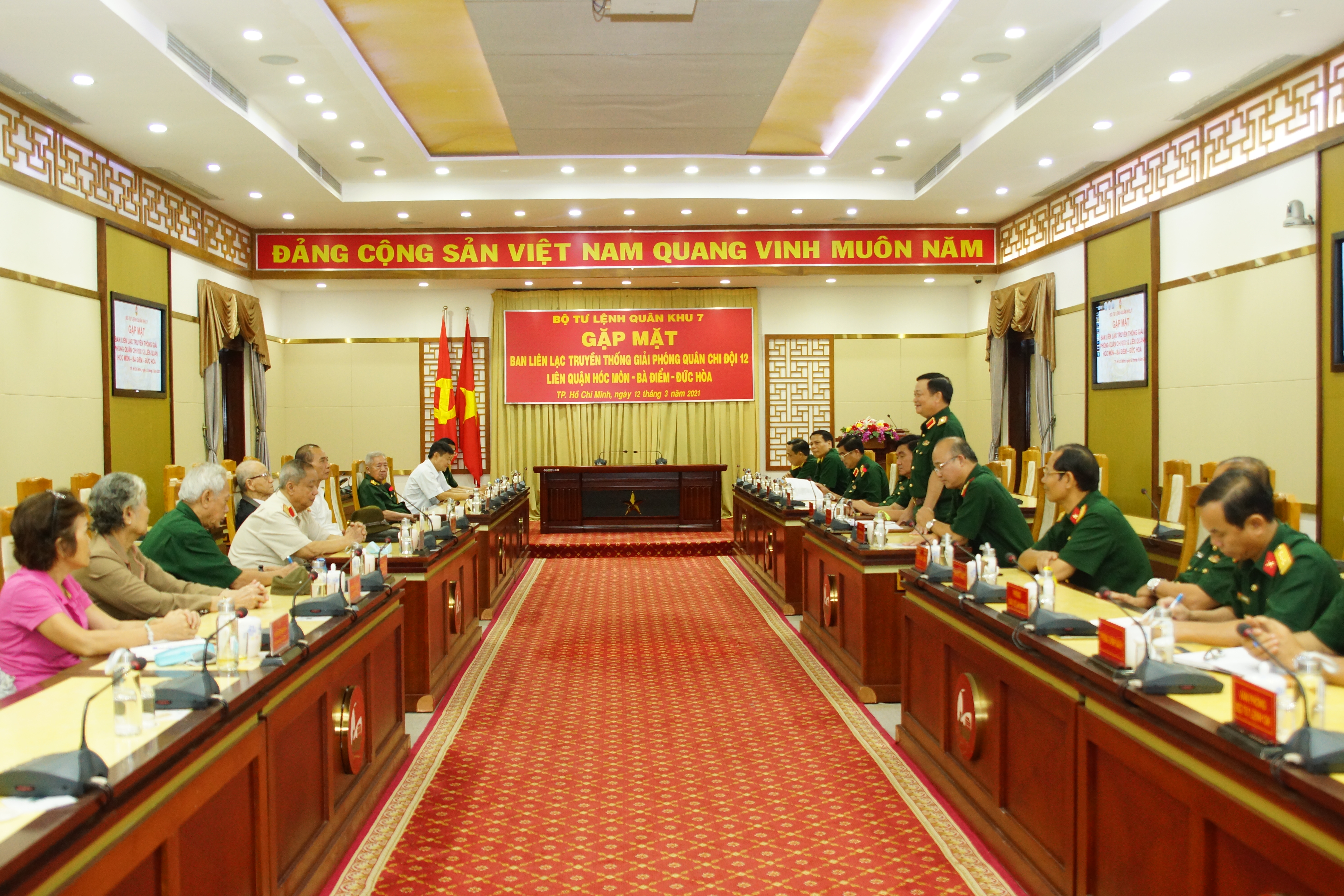(QK7 Online) – Chiều 12/3, Trung tướng Trần Hoài Trung, Bí thư Đảng ủy, Chính ủy Quân khu 7 cùng Thủ trưởng Bộ Tư lệnh Quân khu và các cơ quan Quân khu gặp mặt Ban liên lạc Truyền thống Giải phóng quân Chi đội 12, Liên quận Hóc Môn – Bà Điểm – Đức Hòa.