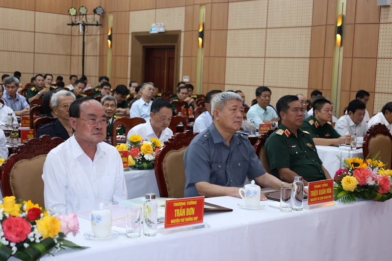 Thượng tướng Trần Đơn, nguyên Ủy viên Ban Chấp hành Trung ương Đảng, nguyên Uỷ viên Thường vụ Quân uỷ Trung ương, nguyên Thứ trưởng Bộ Quốc phòng; Trung tướng Triệu Xuân Hoà, Anh hùng lực lượng vũ trang Nhân dân, nguyên Tư lệnh Quân khu; Thiếu tướng Huỳnh Tấn Hùng, Phó Chủ nhiệm Tổng Cục Hậu cần - Kỹ thuật dự buổi gặp mặt.