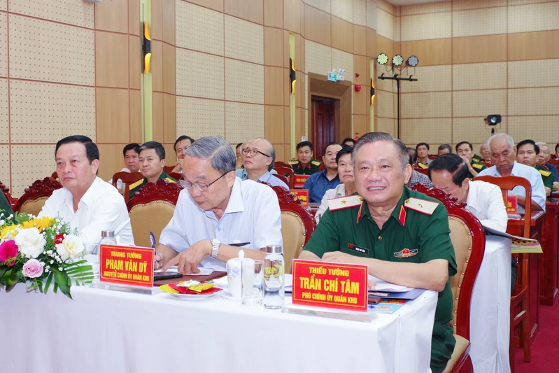 Thiếu tướng Trần Chí Tâm, Ủy viên Ban Thường vụ Đảng ủy, Phó Chính ủy Quân khu; các đồng chí nguyên Thủ trưởng Bộ Tư lệnh Quân khu dự buổi gặp mặt.
