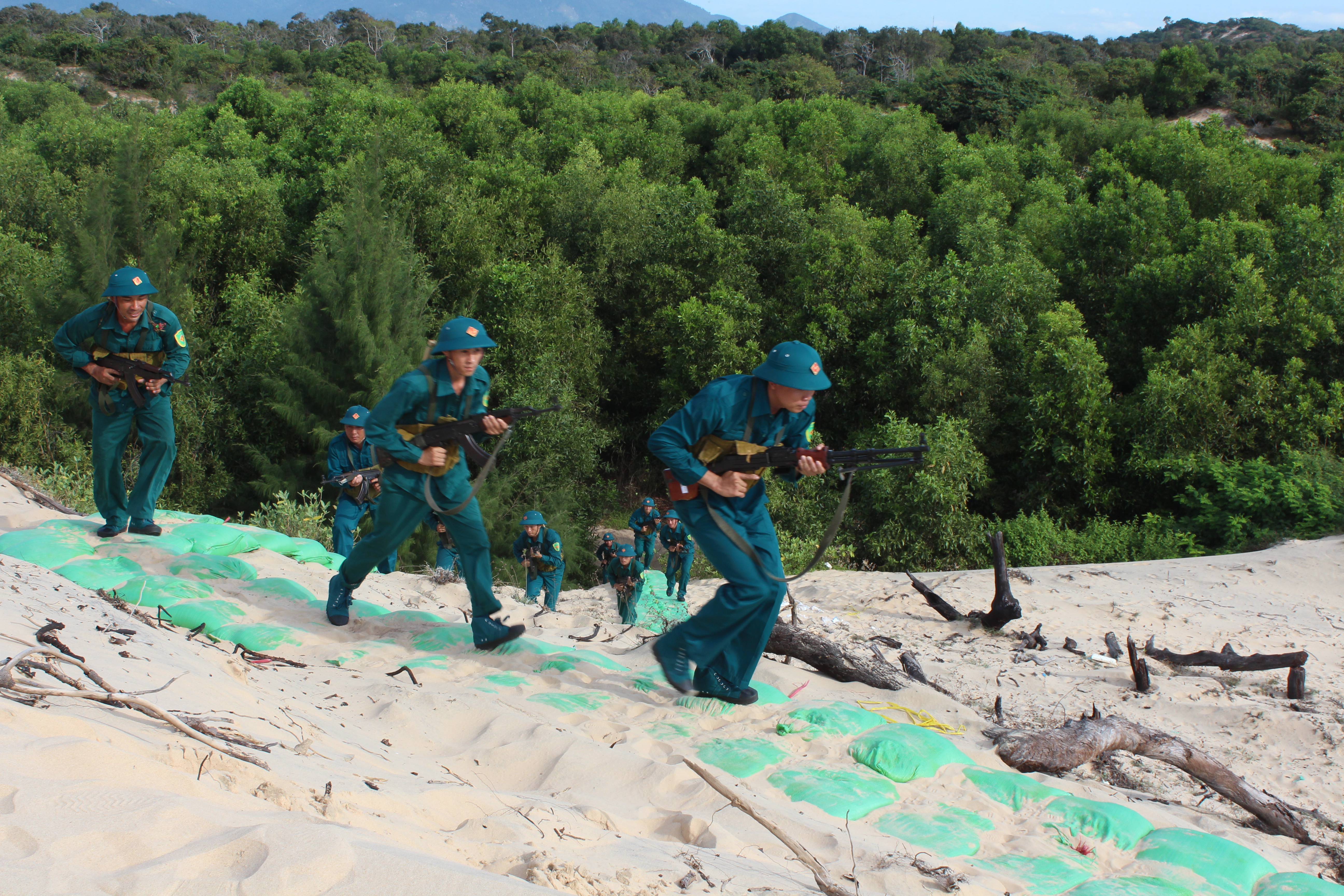 Suốt tháng 11-2016, trong những vạt rừng tràm, xà cừ ở thôn Phò Trì, xã Tân Thắng, huyện Hàm Tân (Bình Thuận), những cánh quân chủ lực, bộ đội địa phương, dân quân tự vệ đổ về trú quân, chuẩn bị diễn tập đánh địch xâm nhập bờ biển. Hành quân, trú quân, chiến đấu trong điều kiện dã ngoại là dịp để dân quân tự vệ của tỉnh áp dụng các kiến thức, kỹ năng đã được học tập, rèn luyện vào trong thực tế.