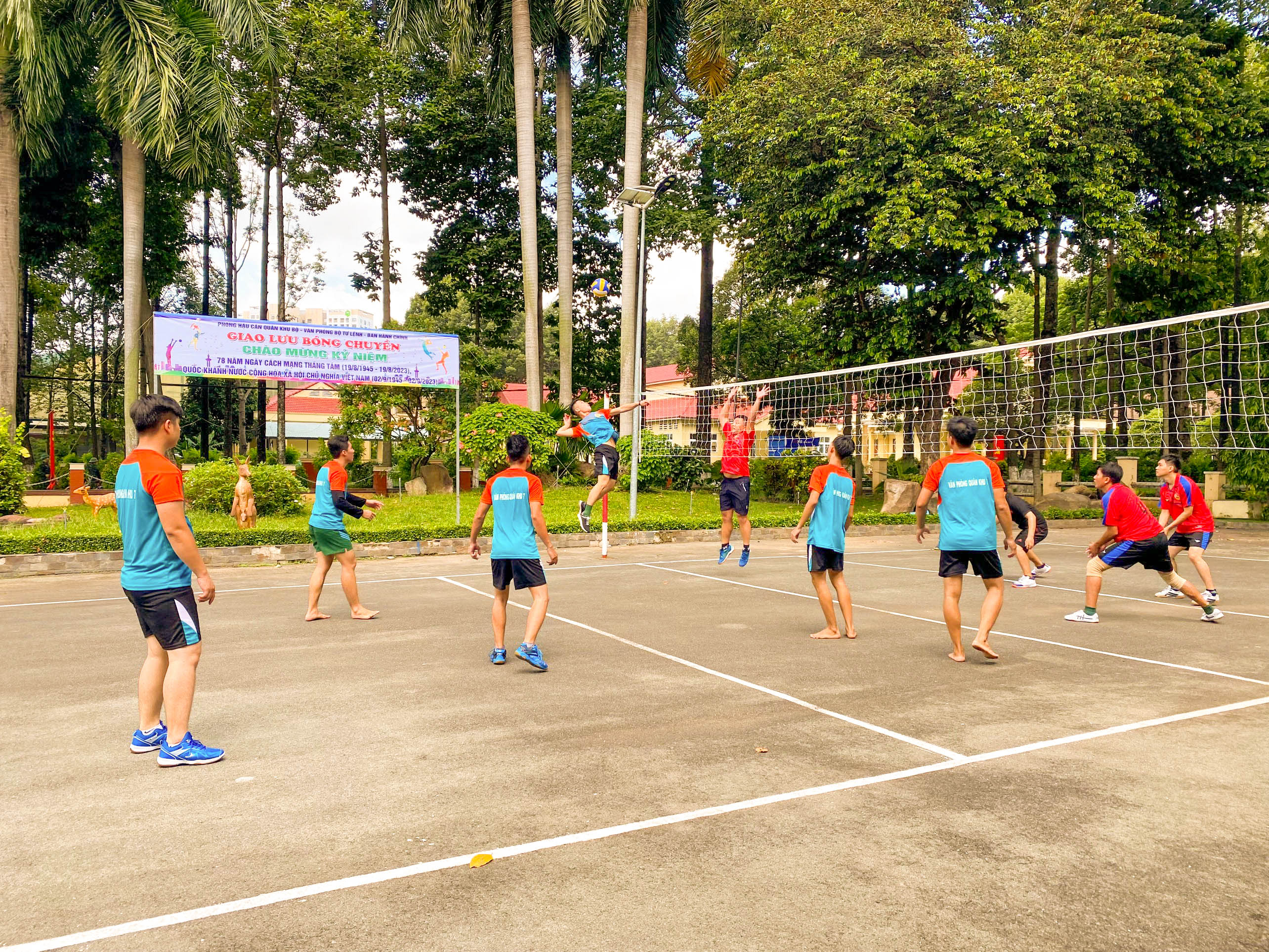 (QK7 Online) - Nhân kỷ niệm 78 năm Ngày Cách mạng tháng Tám và Quốc khánh 2-9, sáng 22-8, Văn phòng Quân khu tổ chức giải giao lưu bóng chuyền nhằm tạo sân chơi thể dục thể thao vui tươi, lành mạnh.