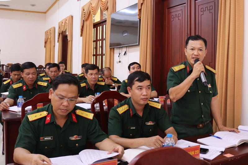 Đại tá Vũ Khắc Tuấn, Phó trưởng Phòng BVAN Quân khu điều hành hội nghị thảo luận.